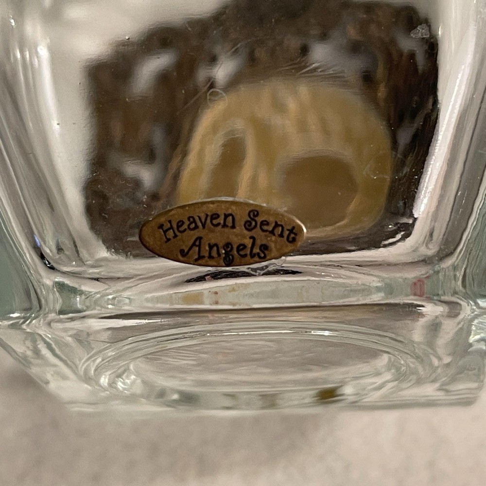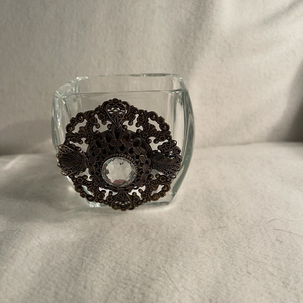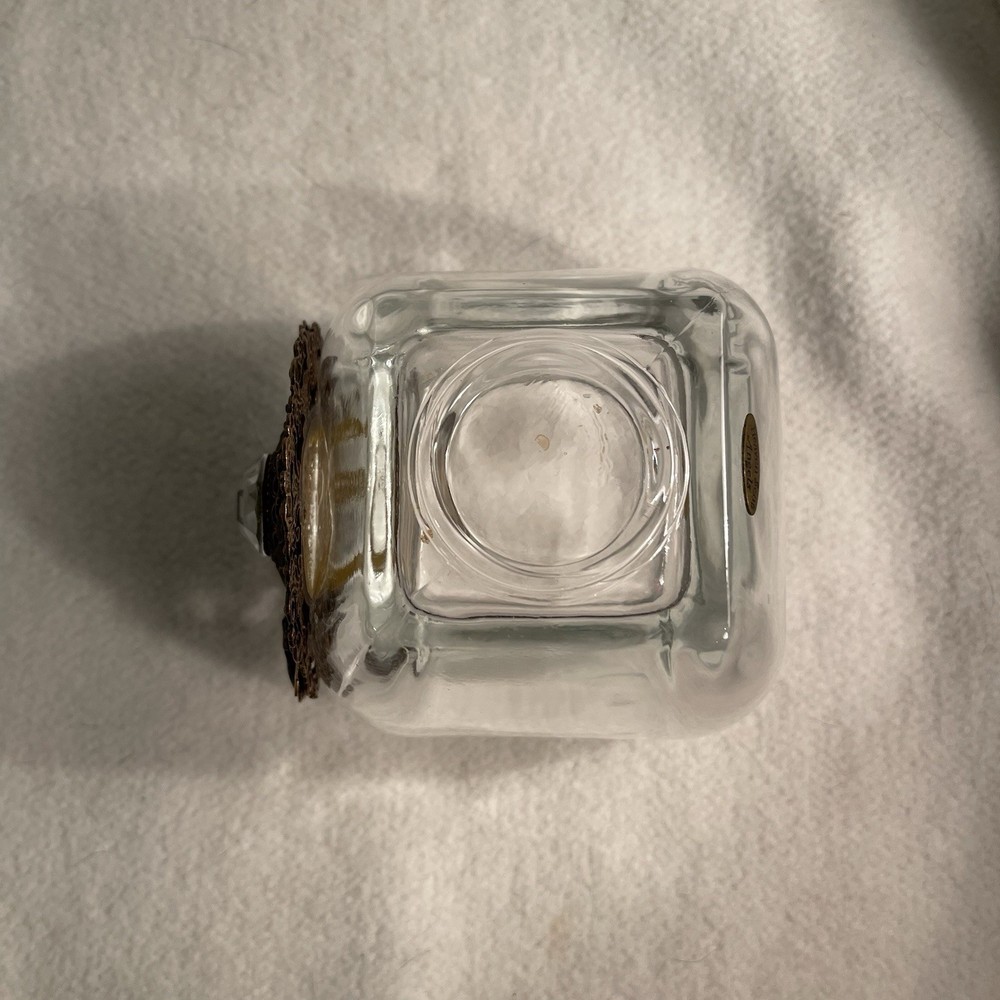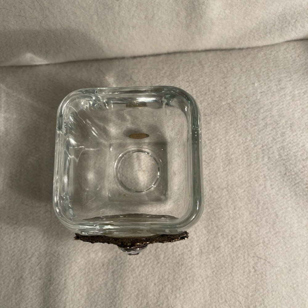 This vintage Heaven Scent Angels Neiman Marcus glass votive holder features an ornate metal accent, making it a luxurious addition to any home decor. The square-shaped candle holder is made of clear glass and is suitable for mini candles. With an art nouveau style and a scent of its own, this original collectible piece from the 2000s is perfect for adding a touch of elegance to any room. Excellent condition. No chips or cracks.