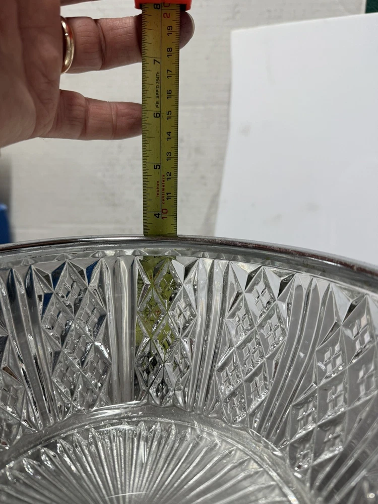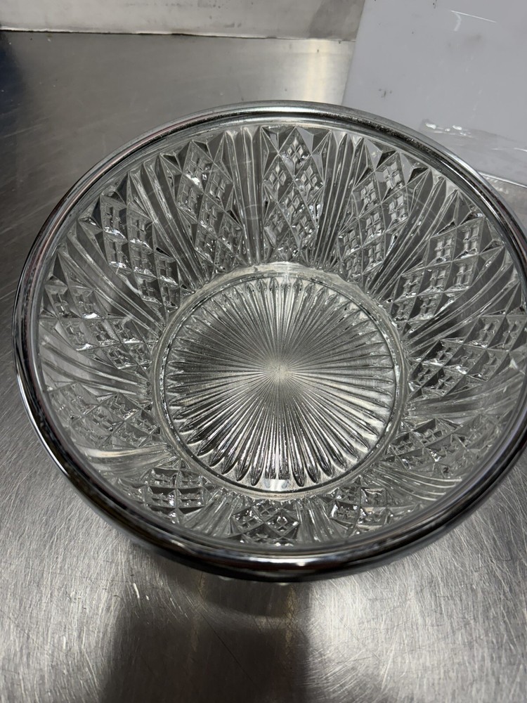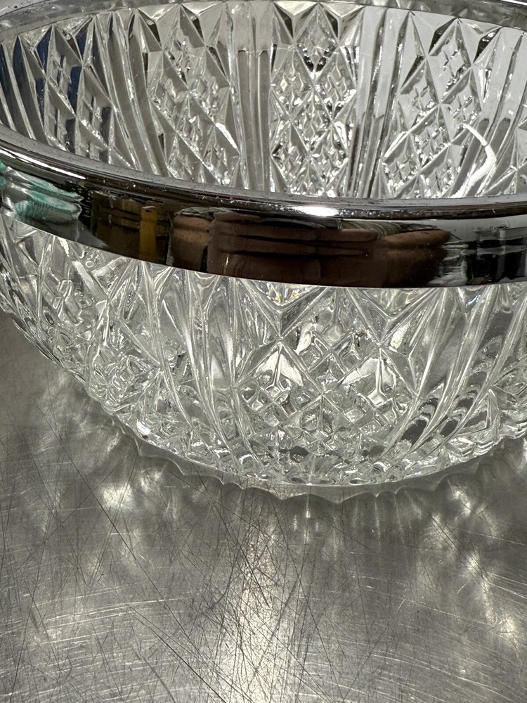 Vintage Heavy Crystal Serving Bowl Salad Bowl With Silver rim England 8x4” New open box