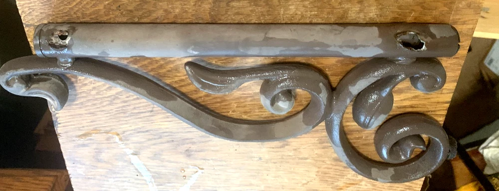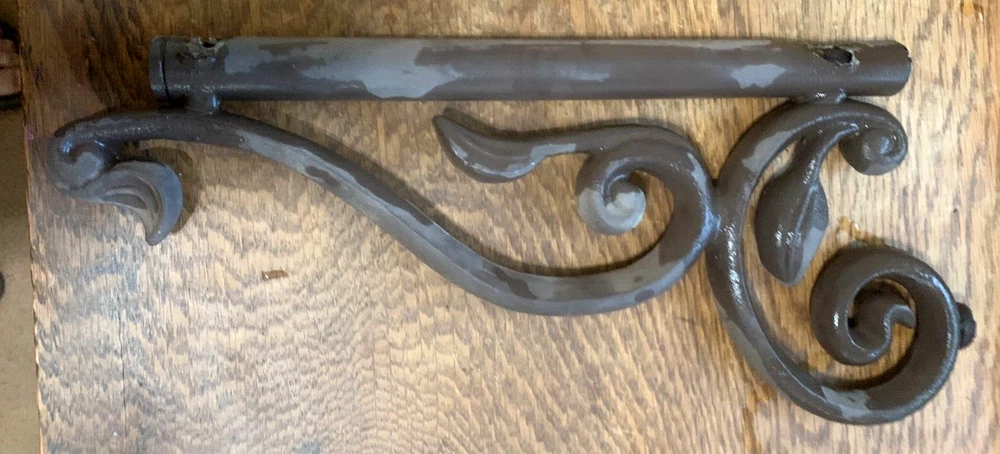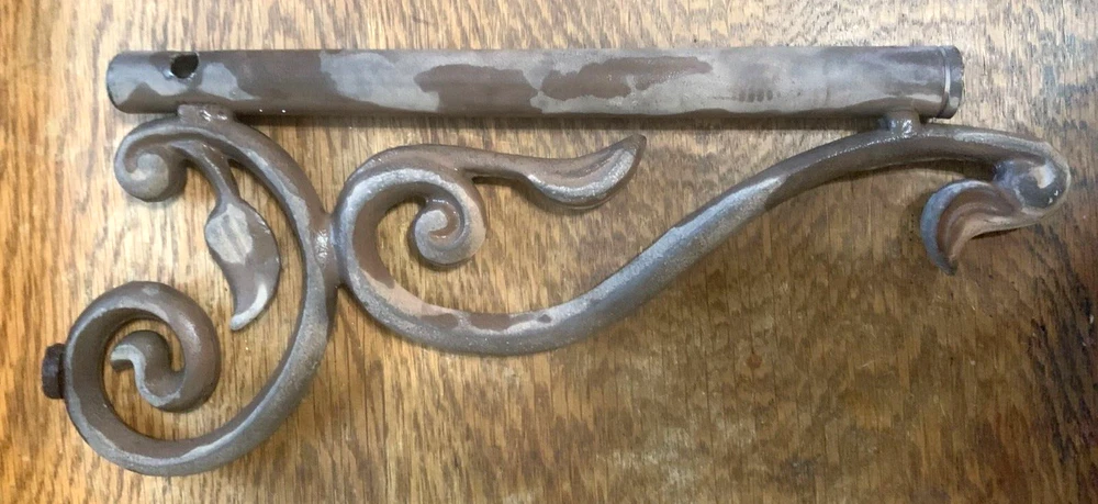 This vintage metal bracket is a versatile addition to your outdoor décor. Its sturdy construction makes it suitable for hanging signs, pots, boxes, and plants. The bracket is designed to withstand harsh weather conditions, making it a perfect choice for outdoor use. Its classic black color adds a touch of elegance to your garden or yard. Crafted from heavy-duty metal, this bracket is built to last and provide reliable support for your hanging items. The metal material also adds a rustic touch to your outdoor space. With its multiple uses, this bracket is a great investment for any home or garden. Measures 14" x 6".