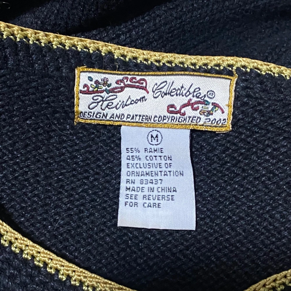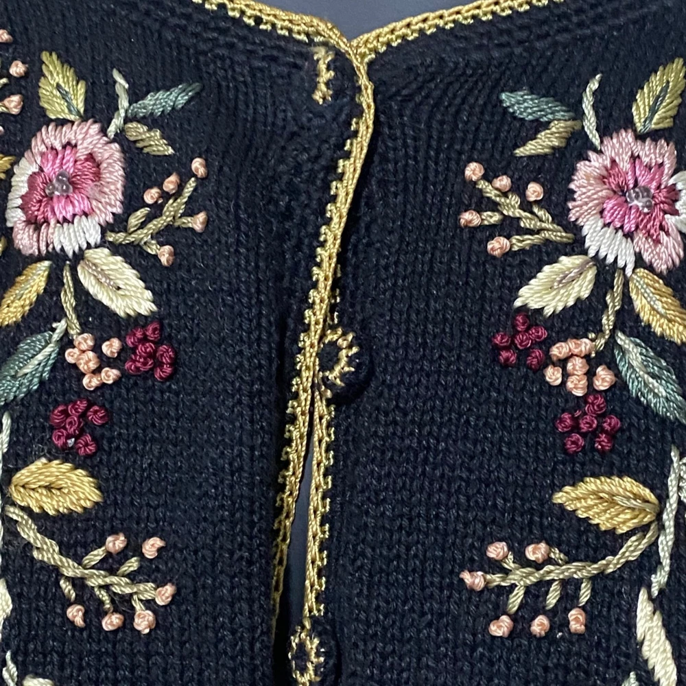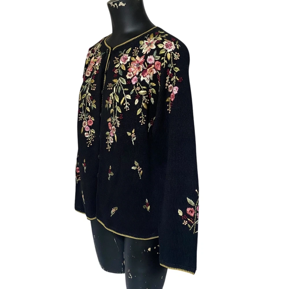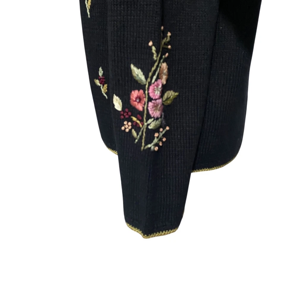 Pattern: Floral Material: Cotton Blend, Cotton-Blend Neckline: Round Neck Color: Black Type: Sweater Style: Cardigan Sleeve Length: Long Sleeve Size: Medium Accents: Embroidered Department: Women Brand: Heirloom Collectibles Size Type: Regular Fabric Type: Knit Fit: Relaxed Knit Style: Tight-Knit