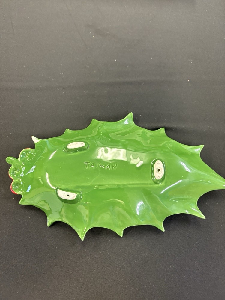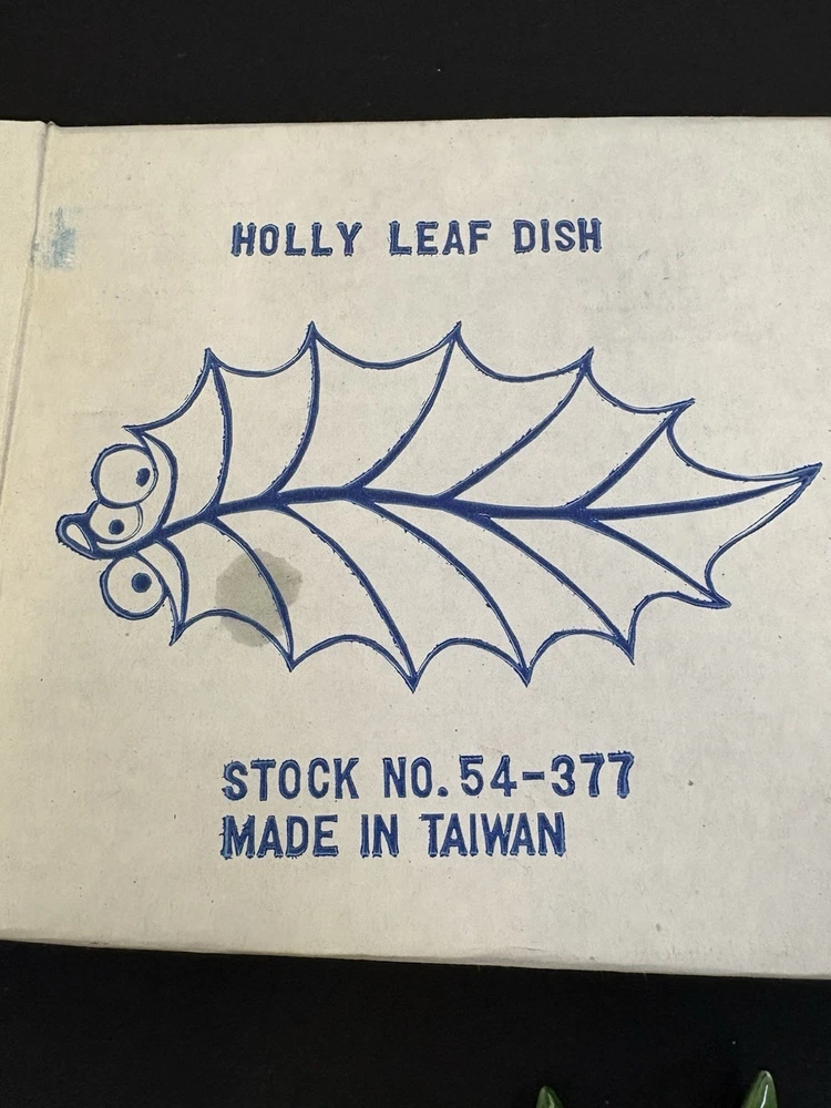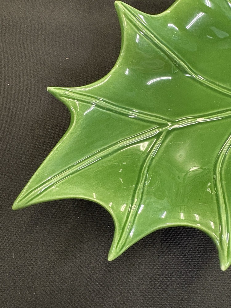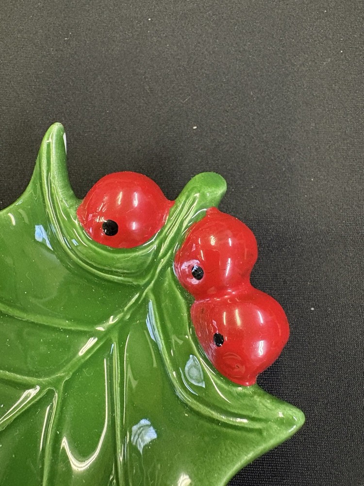 This Vintage Holland Mold Ceramic Green Holly Leaf Candy Dish Bowl is a charming addition to your Christmas decor. Made of ceramic with a beautiful green color, this handmade dish was manufactured in Japan in the 1970s. The holly leaf design adds a touch of nostalgia to your holiday celebrations, making it a unique and festive piece for your kitchen or dining table. Perfect for storing candies or potpourri, this vintage dish is a wonderful way to bring a touch of Christmas cheer to your home. No chips or cracks. In original box.