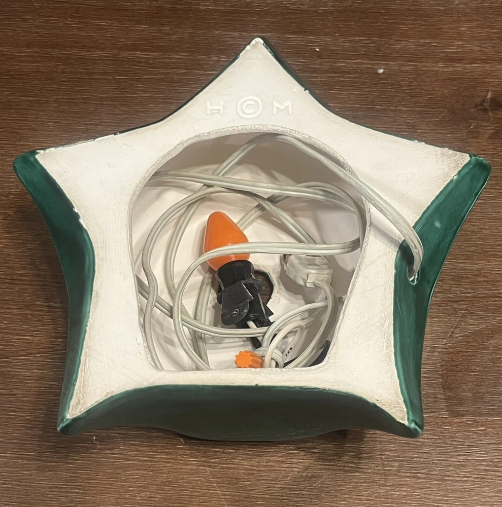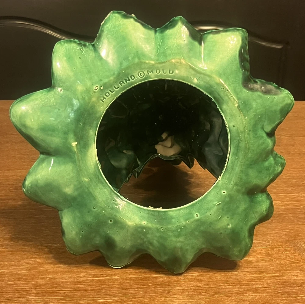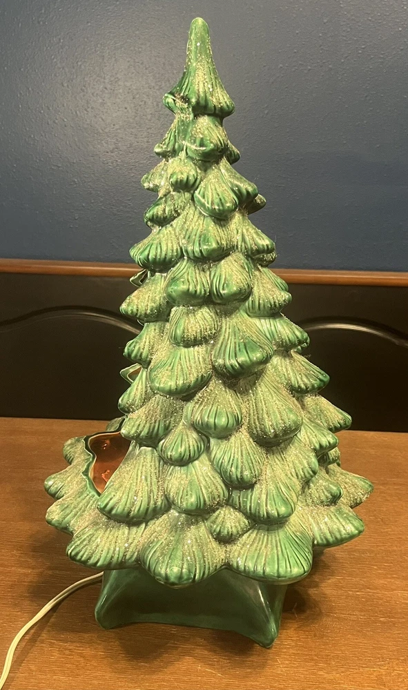 This vintage Christmas tree from Holland Mold is a unique addition to your holiday decor. With a star base and large ceramic tree, it's sure to make a statement in any room. The tree is perfect for collectors and holiday enthusiasts who are looking for a unique decoration. Get your hands on this 1970s era tree and add a touch of vintage charm to your Christmas decor.