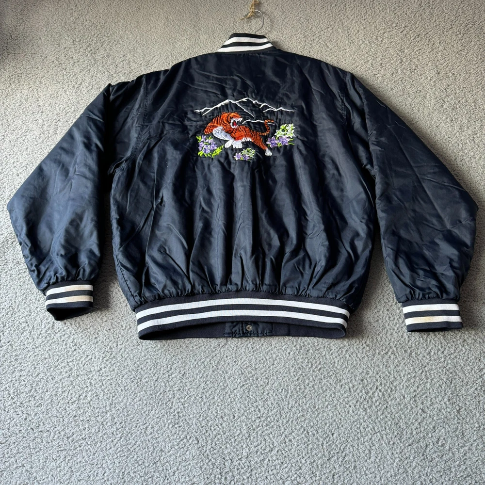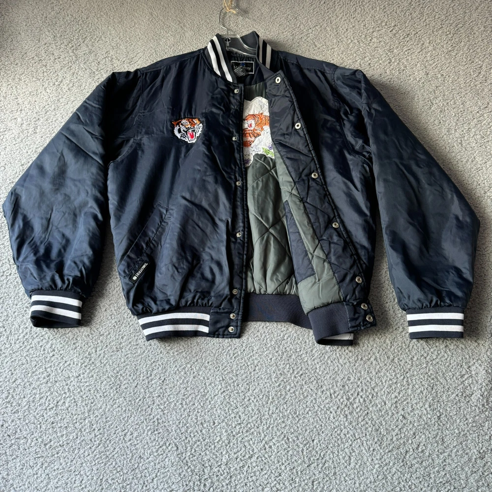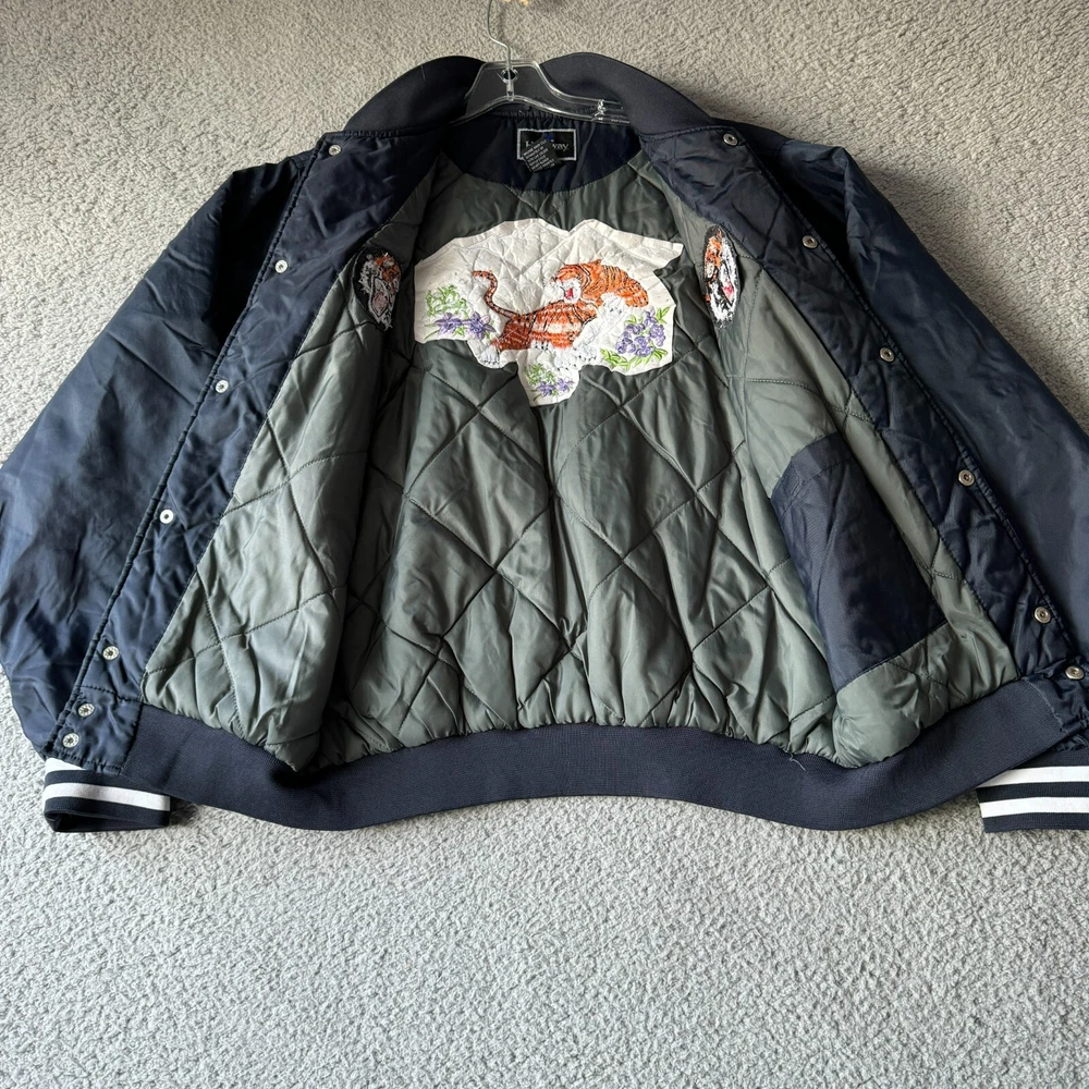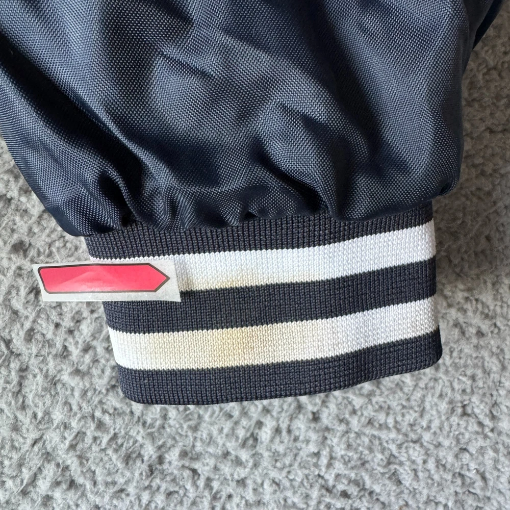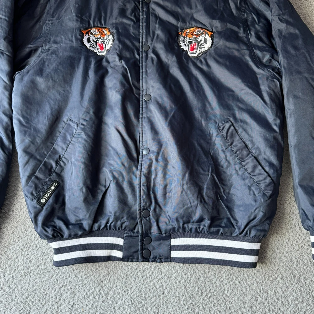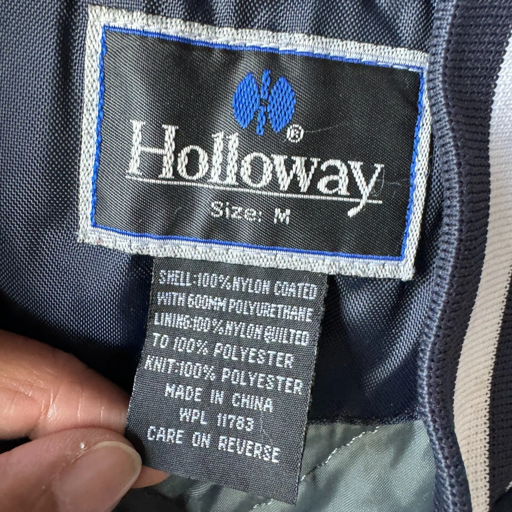 Vintage Holloway Jacket Mens Medium Blue Varsity Bomber Quilted Nylon Snap Coat Condition: Pre-owned. Some light stains on cuffs as shown in photos, good condition otherwise. Please review all photos carefully to assess condition and check measurements for best fit. Please let us know if you have any questions. Thanks for shopping with us.