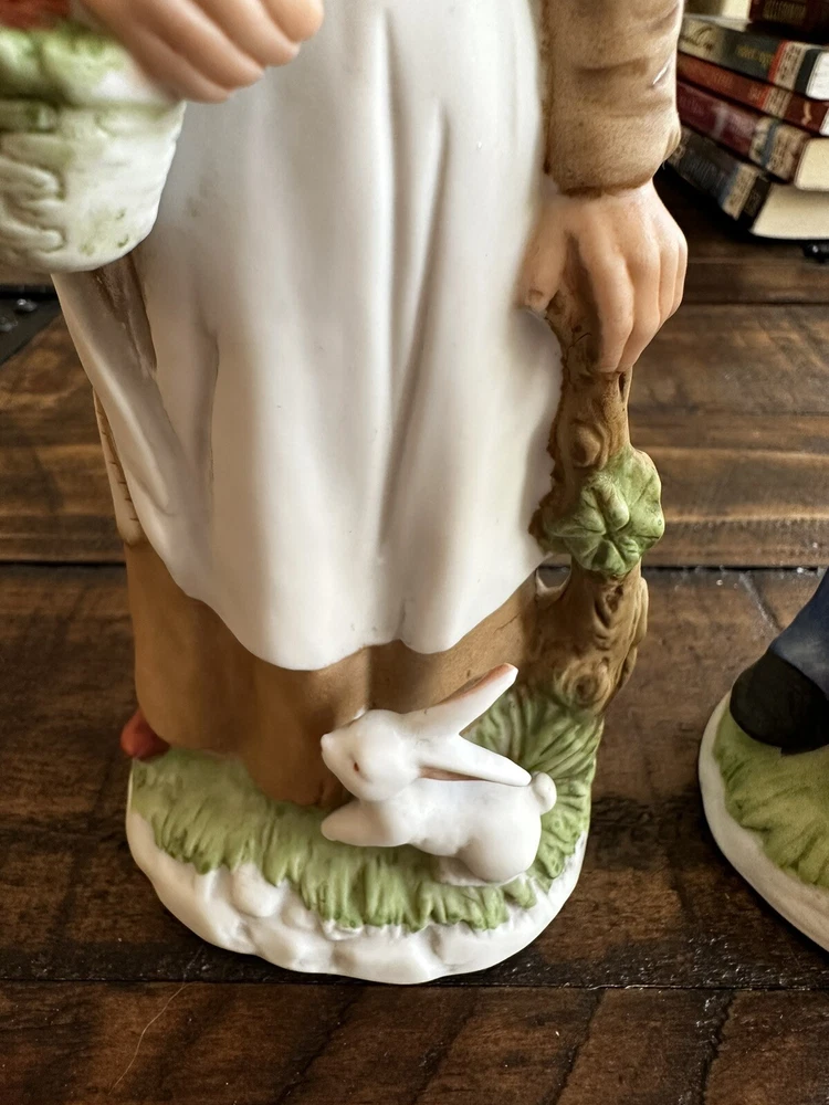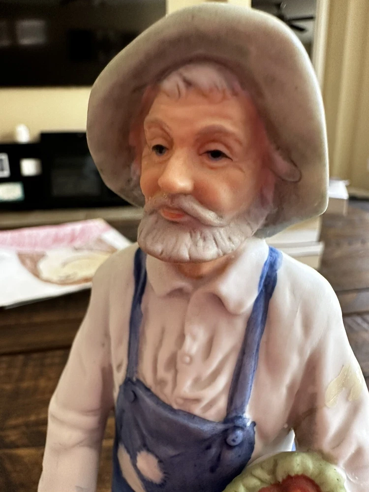 Vintage Homco Old Couple #1409 Farmers 8" Porcelain Figurine Pair.