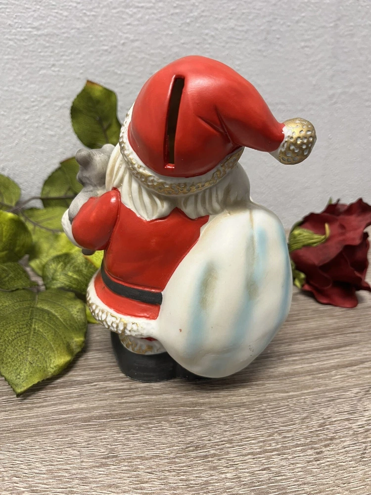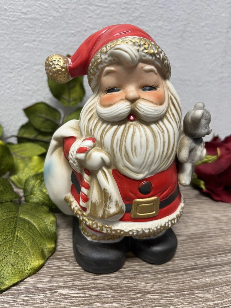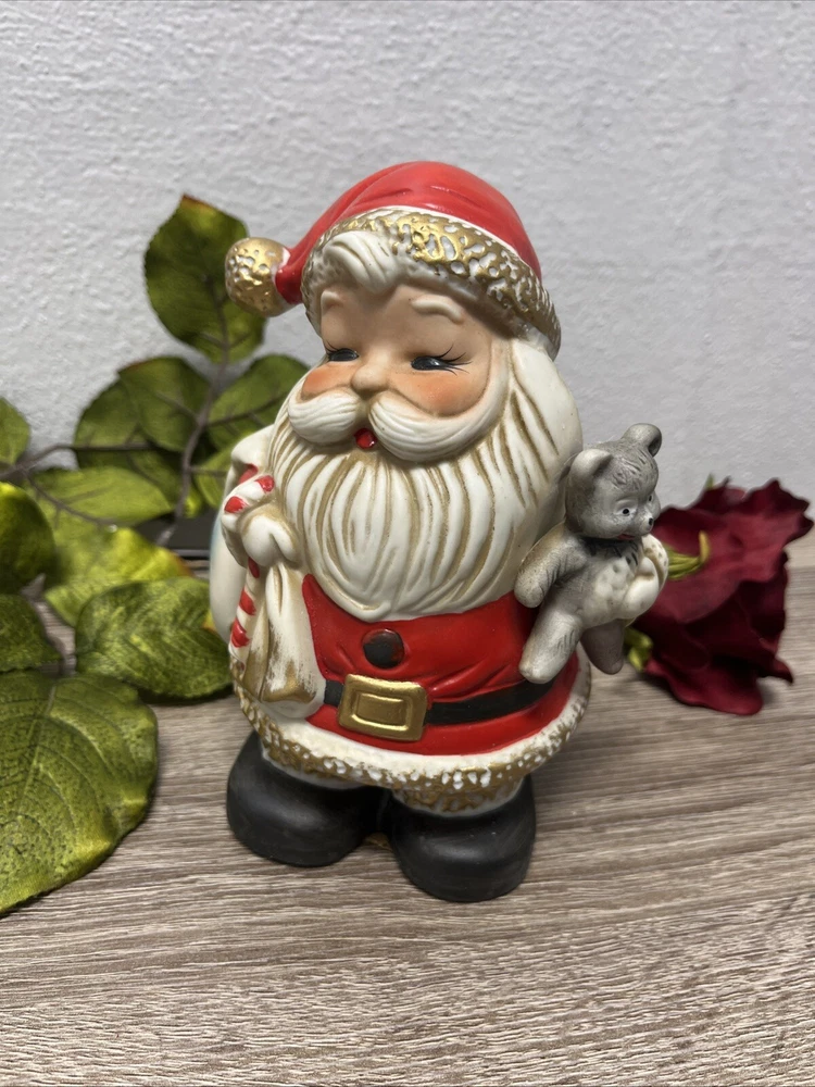 This vintage Homco Santa Claus bank is the perfect addition to your Christmas holiday decor. Crafted from porcelain bisque, this figurine features a jolly Santa in a red suit with a matte finish. It is suitable for teens, adults, and kids and is a great way to celebrate the season. The figurine is part of the North Pole collection and is manufactured in Taiwan. It is a current piece from 1991-now and is perfect for collectors. The bank is empty and does not have a pattern. The subject is Santa Claus, and the character family is also Santa. This is a great gift for anyone who loves collecting Christmas decor. Preowned and excellent condition. Stands 5 inches tall. I do not have the box, but I do have the protective foam covering around it that has preserved it.