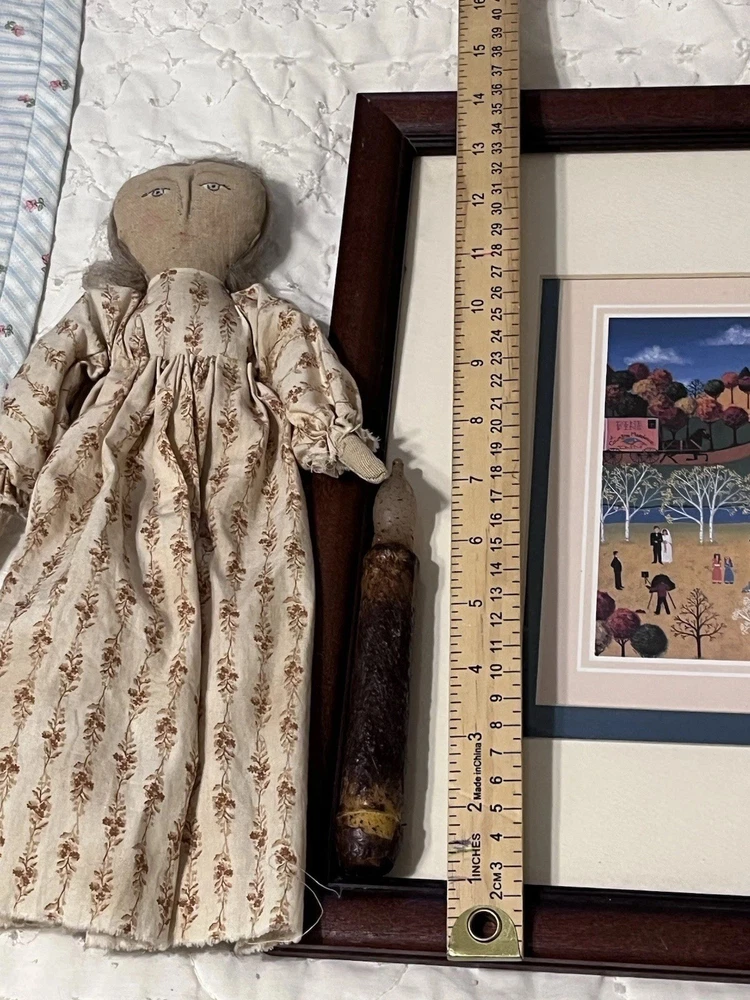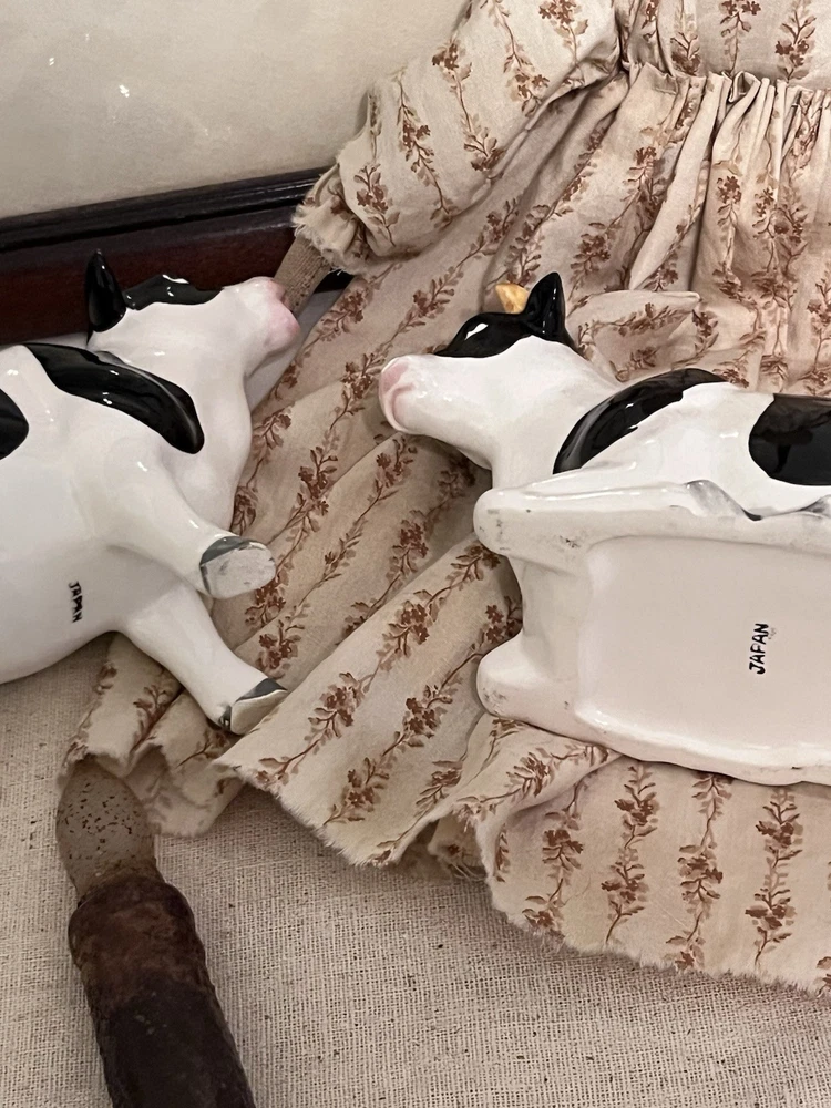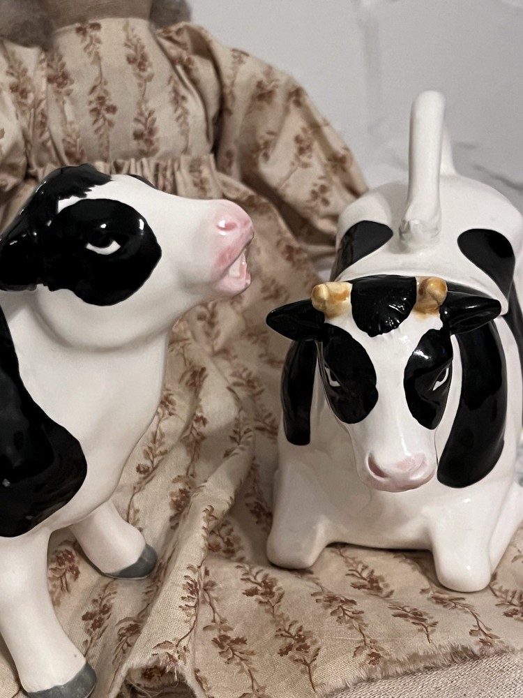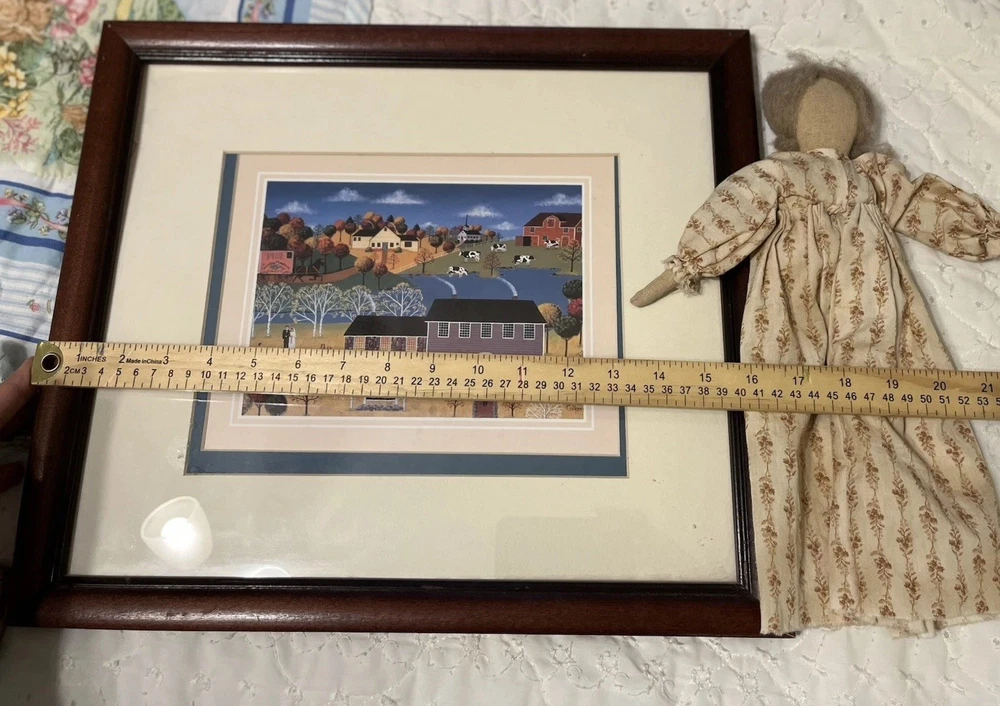 Beautiful lot! All has been well cherished changing out decor. There is the adorable creamer and sugar Japan cows, the little occupied Japan planter, the signed number art framed print with little cows also in there, the candle takes two double A batteries didn’t have any or would have had lit with the little rustic holder also, the primitive doll handmade she has a soft body and sits however was made without legs, and the basket with four wooden milk bottles. The one has a small chip but cannot see as you can tell in photos. Handmade hearts runner.All has belonged to me like most items I sell I change out seasonal most of my home decor. Drives the hubby nuts but what’s a gal to do lol. Please note that this lot has collectable items such as the cows, art print, and handmade the doll. Blow up all photos please part of the description as well. No chips cracks on the cows and the little planter has a little crackle due to his age. I have a gorgeous large framed primitive picture listed also that went perfect and that is how I had my dining room:) I don’t sell items that I would not want that are all damaged. Hoping to end selling soon so get while ya can. Please ask any questions happy to reply. All sales are finale. All will be packed by professional’s as well. Have a blessed day thanks.