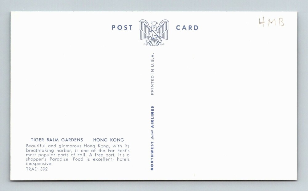 This vintage Hong Kong postcard is a stunning piece of nostalgia! The detailed Tiger Balm Gardens and pagoda artwork takes you back in time, making it perfect for collectors or as a unique gift. The colors are vibrant, and the condition is excellent for its age. Love that combined shipping saves money when buying more—great deal for postcard enthusiasts! A must-have for anyone who appreciates retro travel memorabilia. Highly recommend!