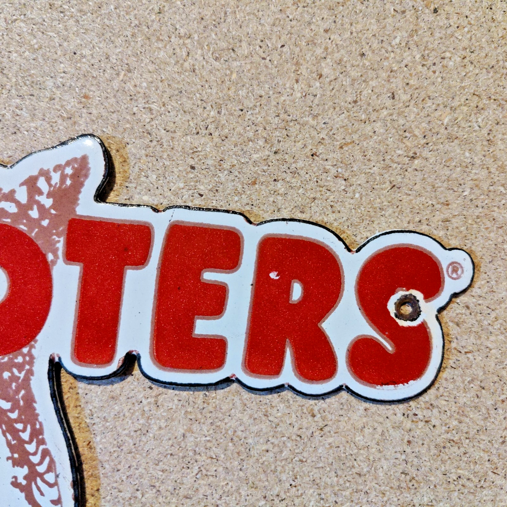 Delve into the charm of vintage Americana with this authentic HOOTERS Restaurants cat porcelain enamel metal sign. Measuring 9" x 6", this original piece hails from the heart of the United States, embodying the spirit of the Gas & Oil theme with its vivid, multi-colored design. Crafted between 1930 and 1969, it is a true testament to the enduring allure of classic advertising. This sign is a prized collectible that captures the essence of the era with its enamel finish, a hallmark of quality and durability. It is a delightful find for enthusiasts of porcelain signs, original signs, and vintage advertising memorabilia, ready to adorn your space with a touch of nostalgia and historical flair.