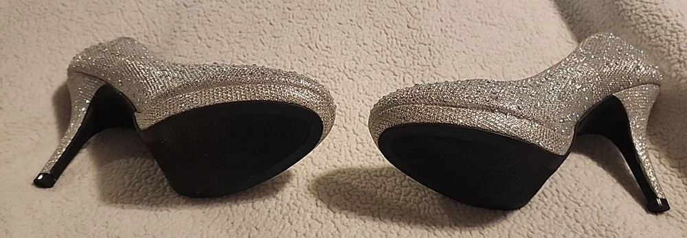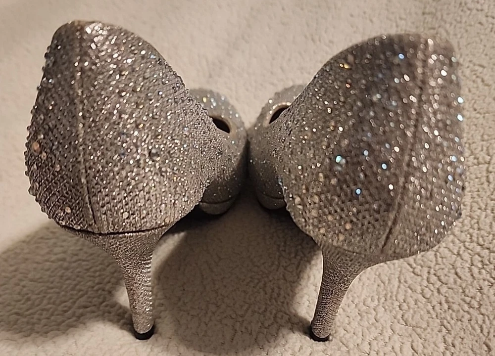 Vintage Hot Tomato Silver Sparkly Glitter Pumps Heels 7M 7 3.5 Holiday Fireworks