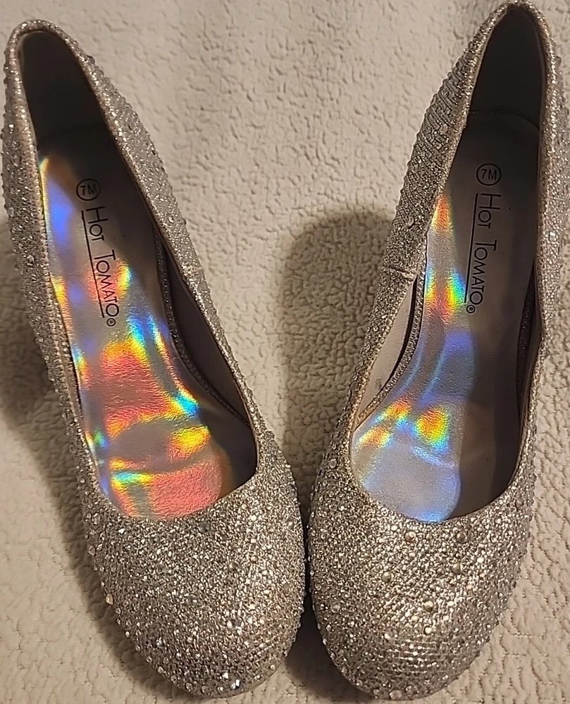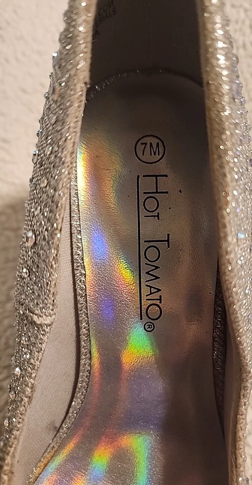 Season: Fall, Winter Shoe Width: M Closure: slip-on Model: hot tomato Features: Reflective Brand: Hot Tomato Outsole Material: Synthetic Theme: Christmas, Dance, Disco, Fairytale & Fantasy, Festival, Festive, Going Out, Metal, Victorian, Wedding, party, holiday Occasion: Business, Formal, Party/Cocktail, Travel, Wedding Color: Gold Type: Heel Personalization Instructions: na Character: Alice in Wonderland, Belle, Cinderella, Dorothy, Fairy, Mermaid, Skater Girl, Snow White, Sofia Insole Material: Synthetic AU Shoe Size: 7 Accents: Glitter, Rhinestone, Sequin, Studded EU Shoe Size: 38 MPN: na Pattern: jeweled Heel Height: High (3-3.9 in) Style: Pump Customized: No Department: Women UK Shoe Size: 5 Heel Style: Stiletto Lining Material: Synthetic Vintage: Yes Platform Height: 3.5 Upper Material: Synthetic US Shoe Size: 7 Toe Shape: Round Toe Personalize: No Country/Region of Manufacture: China