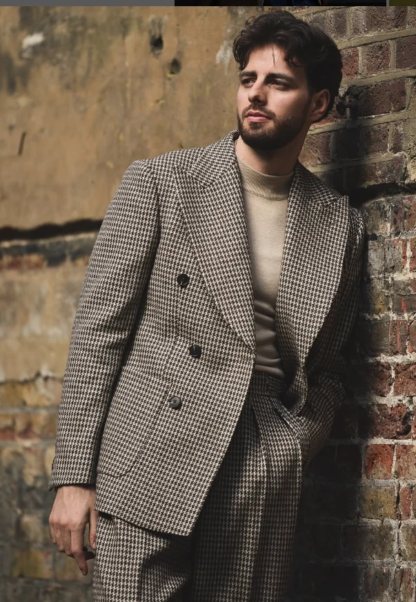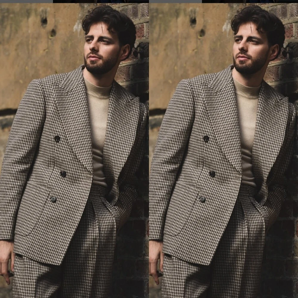 Vintage Houndstooth Men's Suits Wide Peak Lapel Retro Party Prom Men Tuxedos