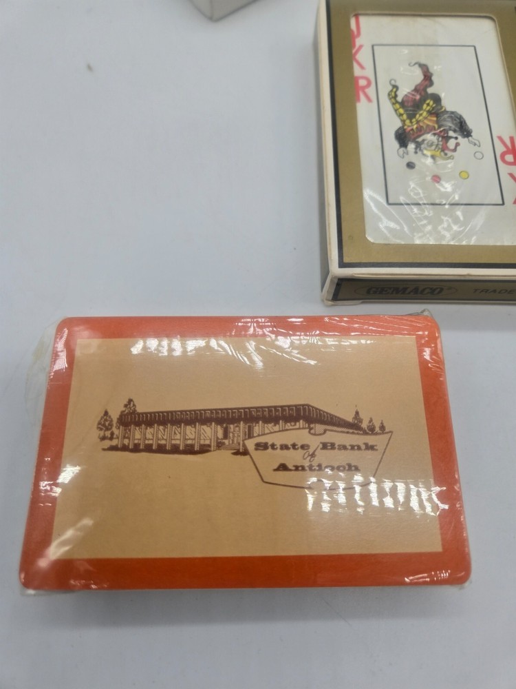 The double set of Gemaco cards are new and wrapped. As are the State Bank of Antioch. The others are used and in good condition.