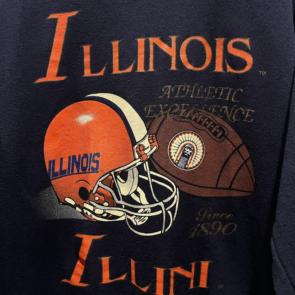 Vintage Illinois Fighting Illini Helmet Crewneck Sweater Men's XL Tultex