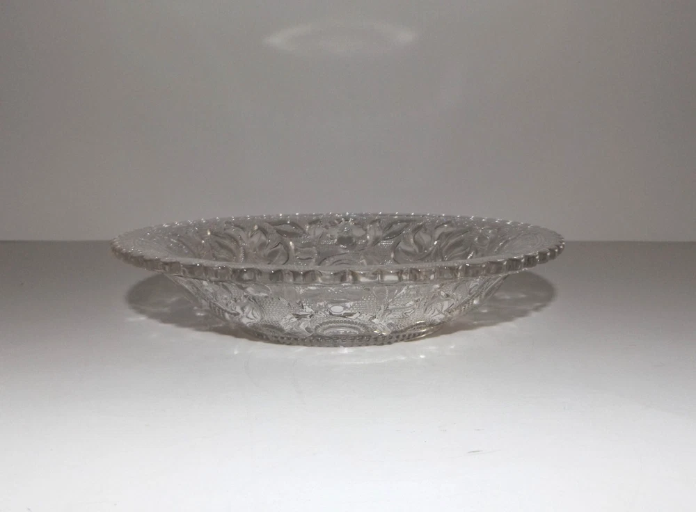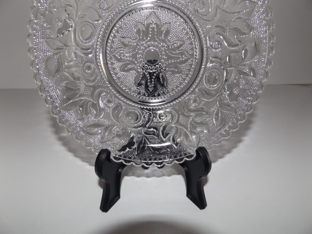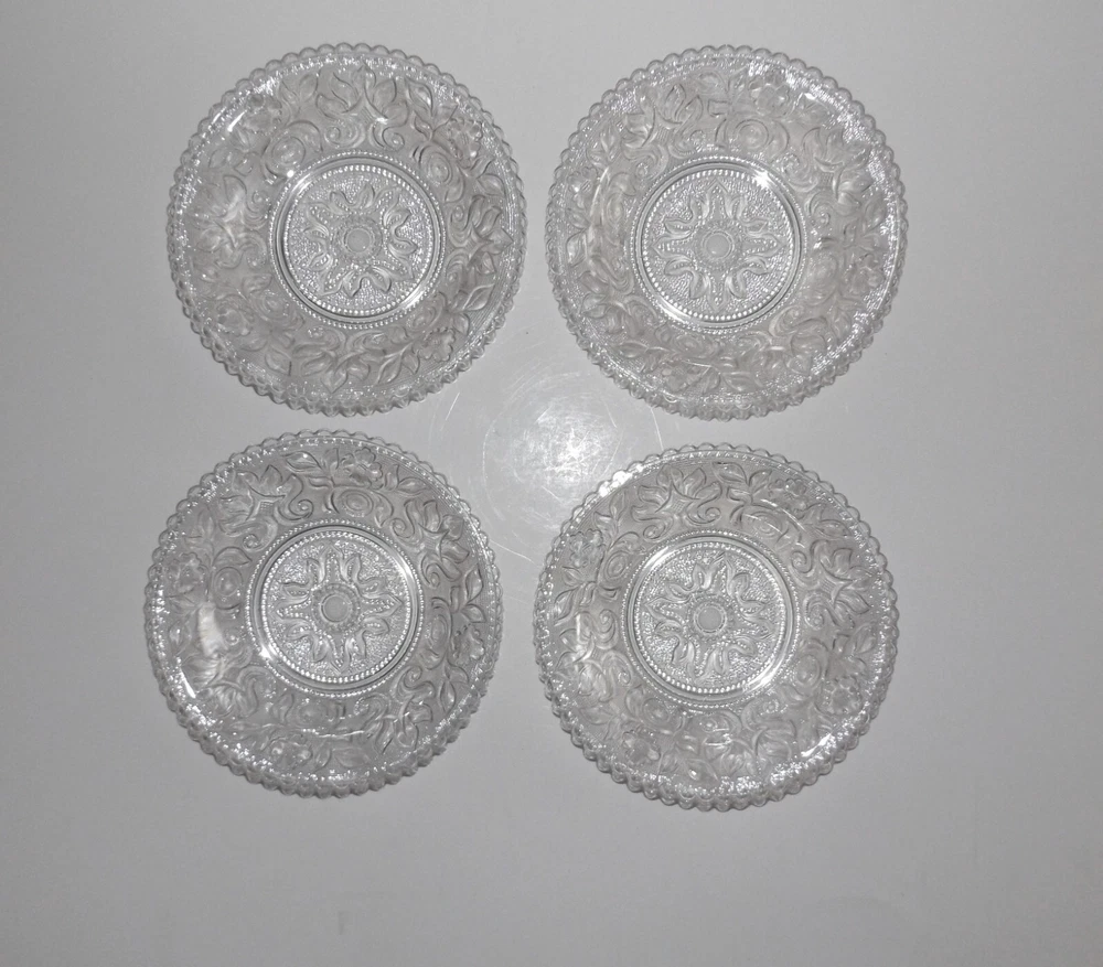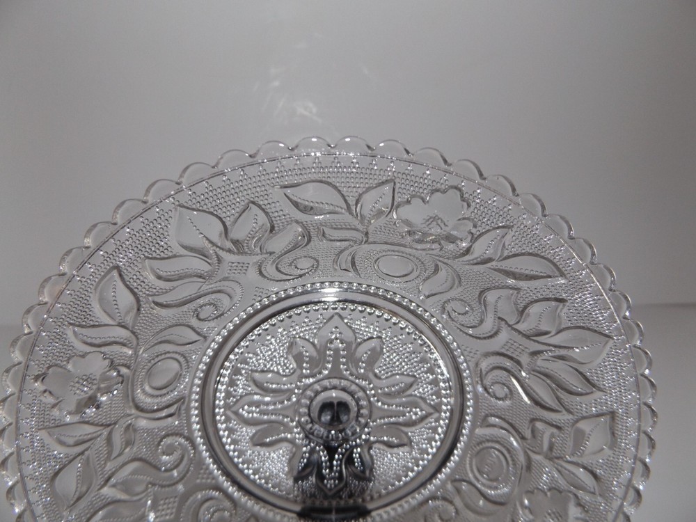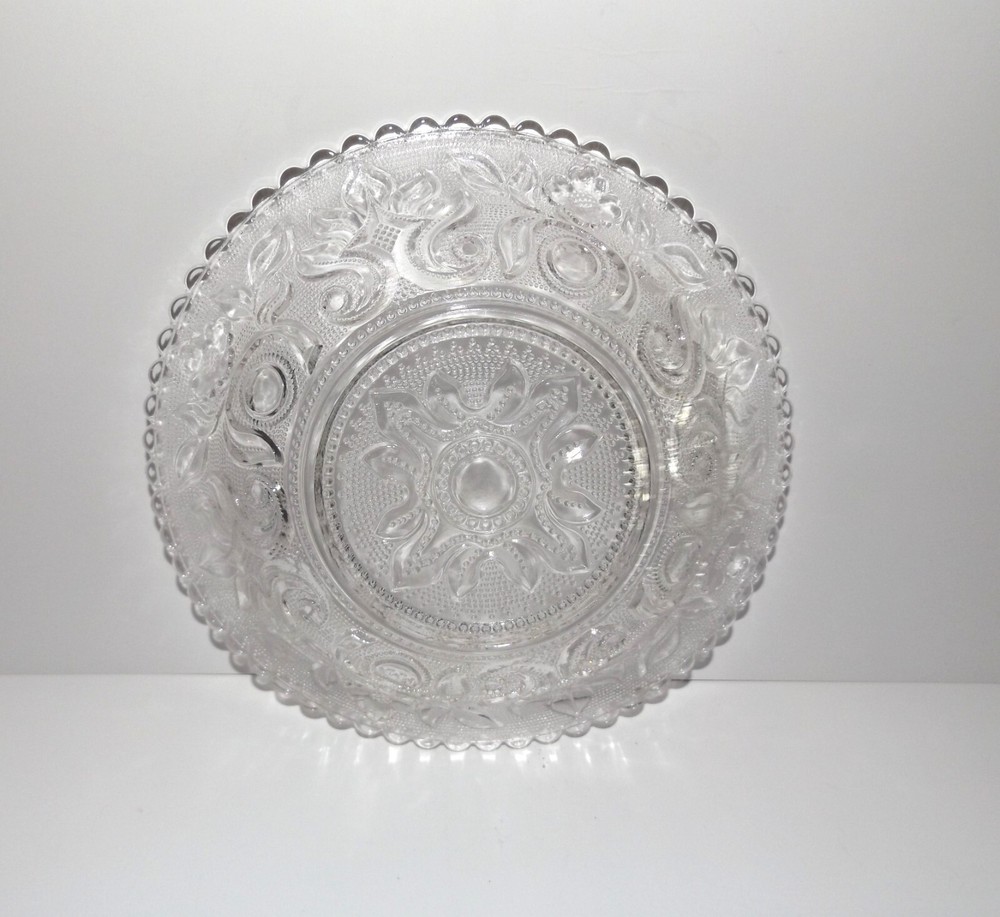 Set of 4 Vintage Imperial Clear Glass Lacy Bowls Metropolitan Museum of Art Set of 4 Imperial Glass clear pressed glass Boston and Sandwich Lacy Bowls commissioned by the Metropolitan Museum of Art to duplicate the style of early – mid 1800s. Floral design with beaded glass fill. Scalloped edges. Each bowl is marked with small MMA embossed in the bowl design. Bowls measure approximately 6 ¼” wide x 1 ¼” deep. No chips, cracks or breaks. May be some pre-owned surface marks. Selling as is. Use pictures as part of description. Stand for display only; not included.