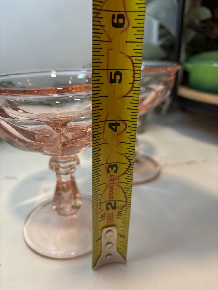 Elevate your toasting experience with these vintage Imperial Old Williamsburg pink champagne coupe glasses. Exquisitely crafted in the mid-1970s, each glass in this two-piece set showcases the timeless elegance of the Old Williamsburg pattern, with its classic round shape and intricate paneled design. Hand-blown from high-quality glass material, these pieces reflect a rich heritage and are a testament to the artistry of the era. Designed for all occasions, these glasses have a 4 fl oz capacity and are perfect for anyone who appreciates the sophistication of mid-century modern style. Whether you’re serving up sparkling wine or elegant sherbet, these unisex glasses are a versatile addition to your collection. Made in the United States, they are original pieces, not reproductions, ensuring you own a slice of authentic vintage art glass history.