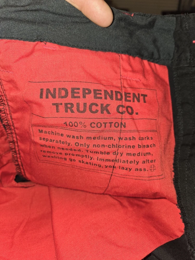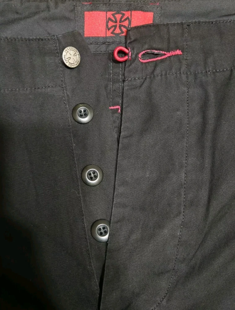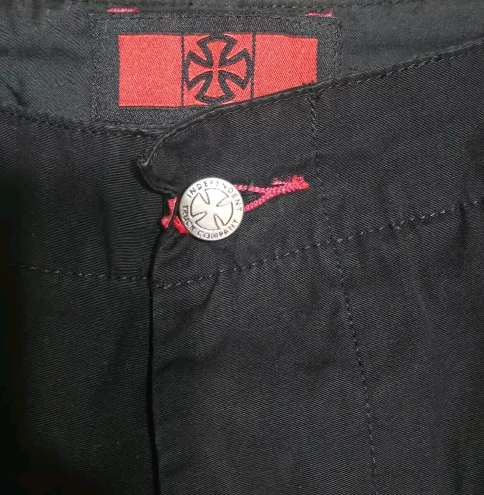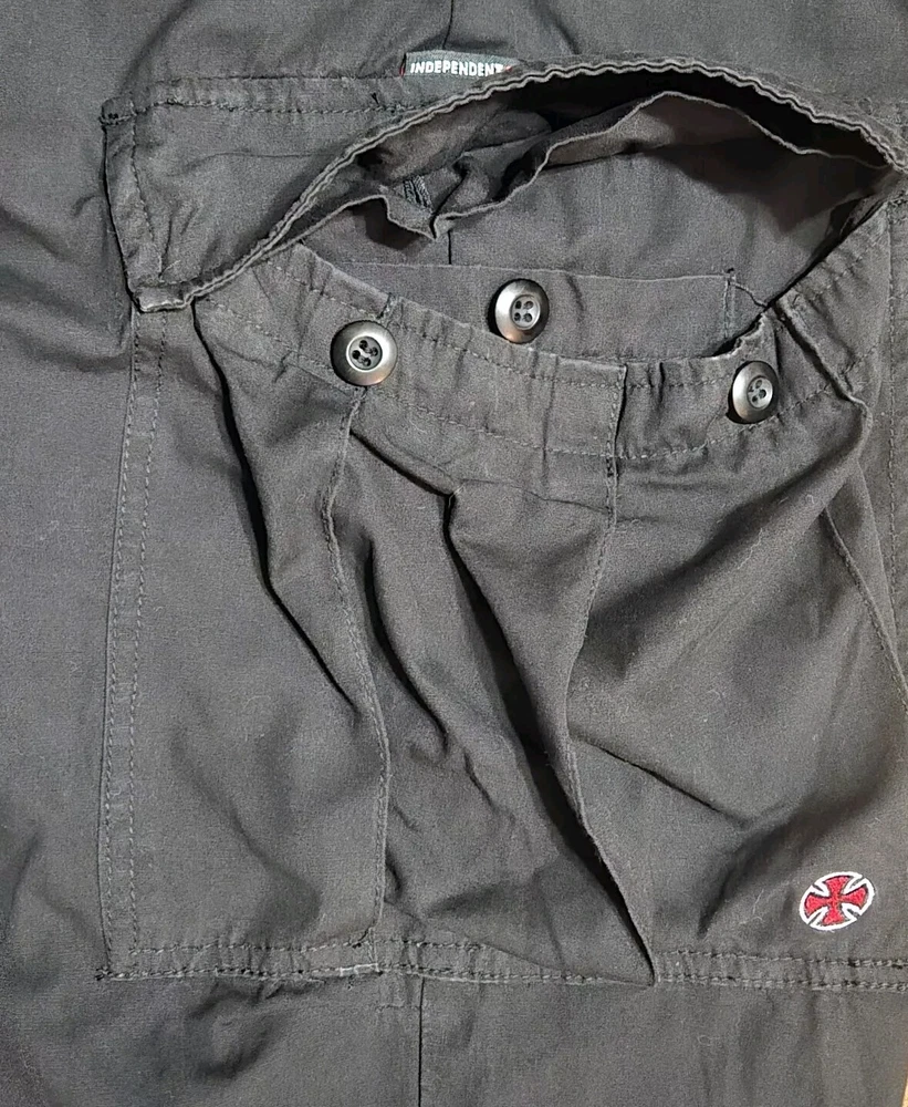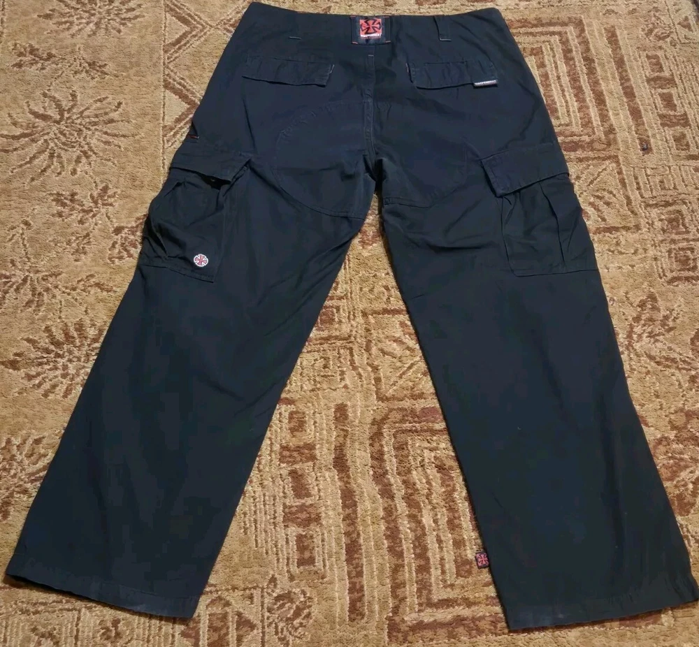 Elevate your style with these black cargo pants from Independent Truck Company. Made of breathable cotton material, these pants are perfect for both casual and workwear occasions. The pants feature a button closure, pockets button closure, one pocket inside pocket, regular fit, and straight leg style, making them a versatile addition to your wardrobe. With a vintage grunge rock theme, these pants are perfect for those who want to add a touch of edginess to their outfit. The pants come in size 34 and have several features, including pockets for convenience and comfort. Get your hands on these pants!