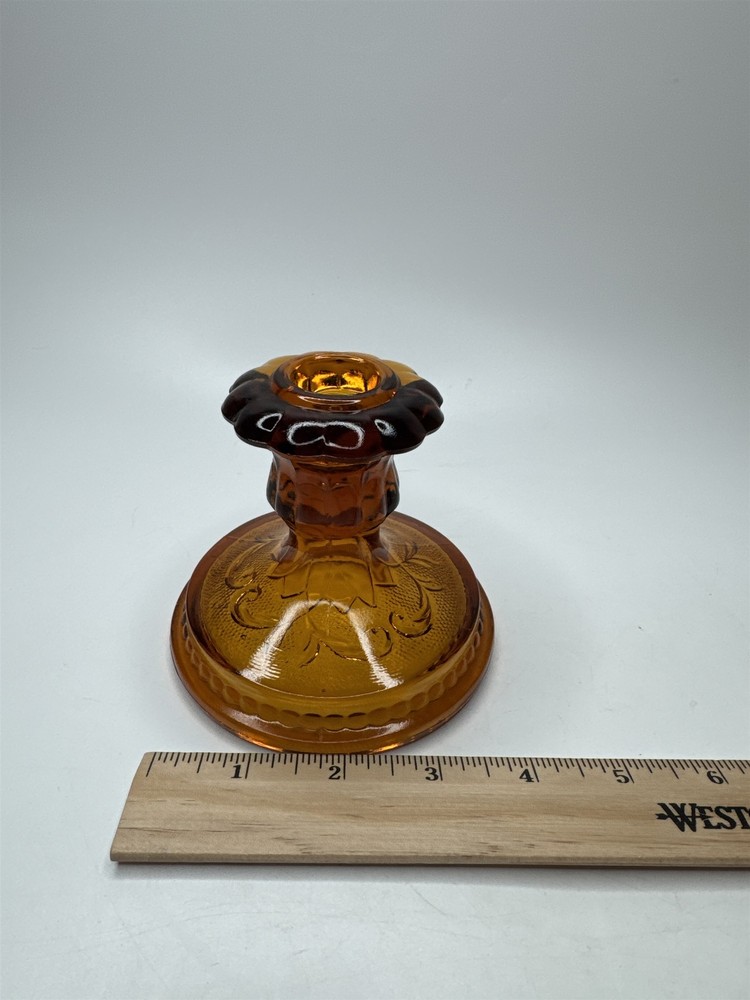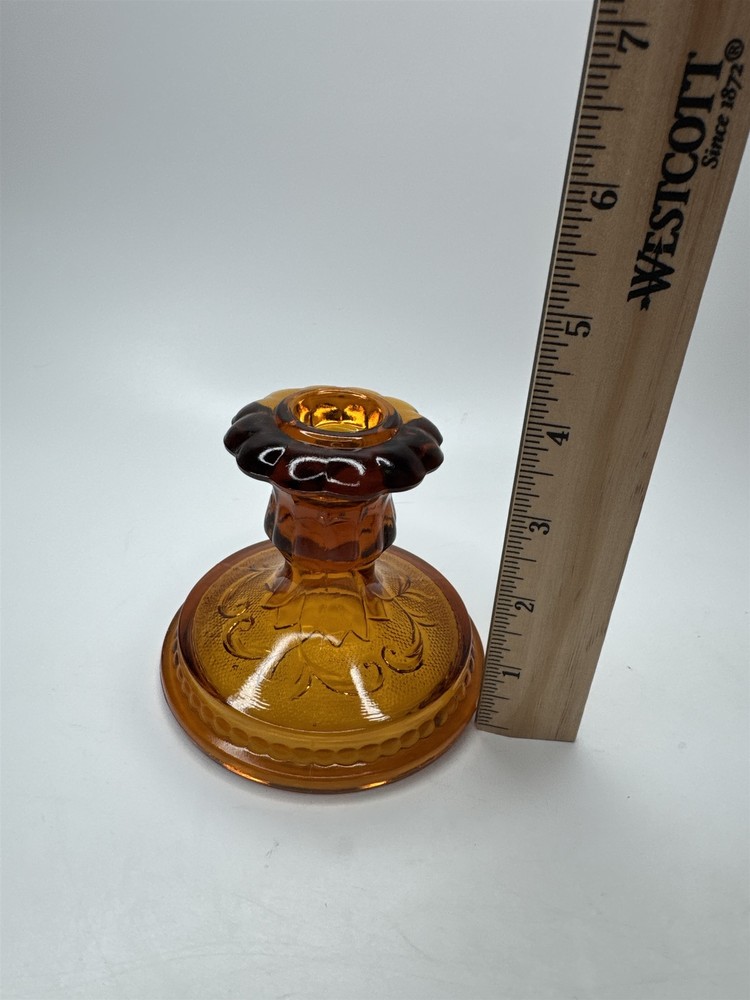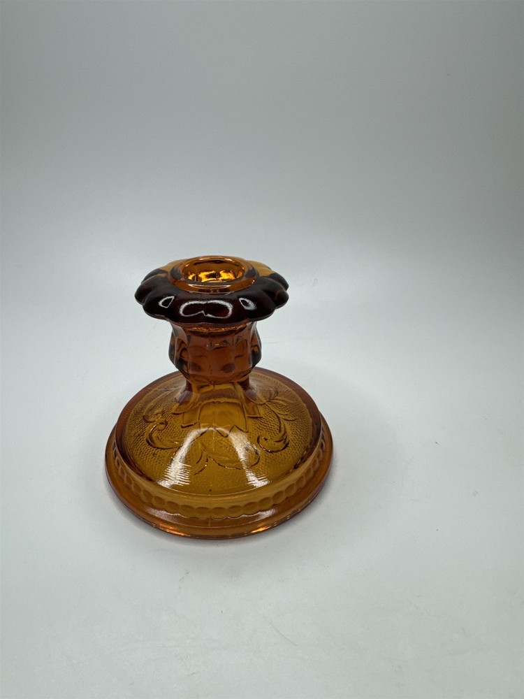 Vintage Indiana Glass Co Tiara Amber Candlestick Candle Holder Sandwich Pattern