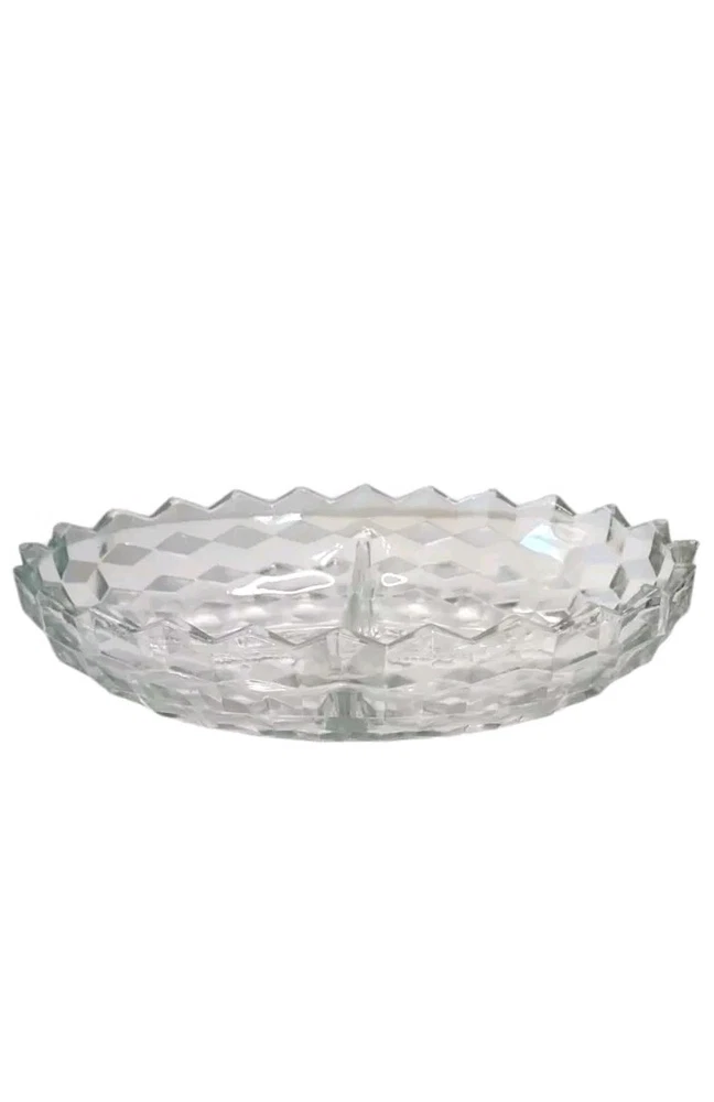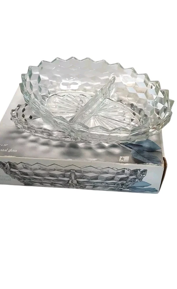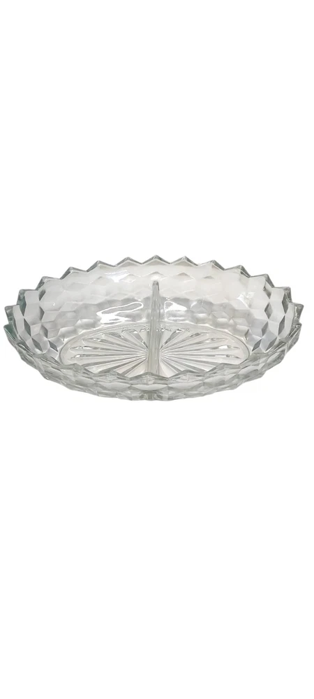 This is a Vintage Indiana Glass Two Part Oval American White Hall Relish Dish, made of clear glass. It comes in its original box & is an original piece made in the United States. This piece is in excellent condition, although the box shows some minor wear it does its job. This piece will ship with immense care, fast & FREE! If you have any questions or would like more pictures of a certain angle I may have missed just reach out & I will reply promptly. Thank you!