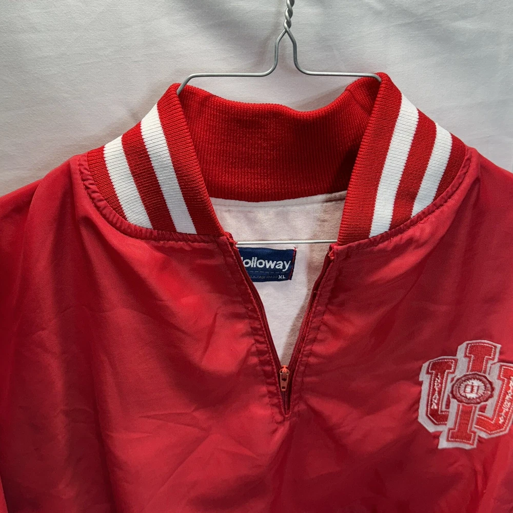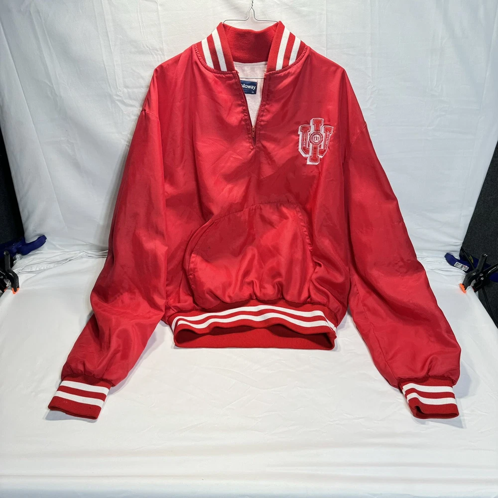 Vintage Indiana University Hoosiers Pullover Jacket Pre-owned used item, Vintage Indiana University Hoosiers Pullover Jacket Brand: Holloway Size: XL Colors: Indiana Hoosier Red and White Pre-owned used Jacket with some signs of wear consistent with general use and age. This jacket is NOT mint or new. This is a used jacket. In overall good condition. It does have a blemish or two if you look close enough. Overall it's a nice jacket in good condition. **Please review all pictures before purchasing.** ******************************************* Shipped within 24-hours of payment. Excluding holidays and weekends. *******************************************