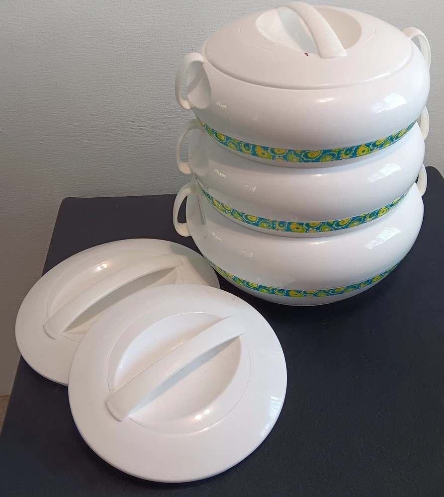 InsoCore (6) MIX & MATCH Piece + 2 Inner Lids (1) 2.5 Quart Server with Lid (1) 1.5 Quart Server with Lid (1) 1 Quart Server with Lid U S A Seller Item(s) Exactly As Shown In The Photos. Please See All Photos For Full Item Condition And Details. If the item is used, any and all flaws will be shown in the detailed pictures . There is no damage to the item, a scuffs here and there that will probably clean off. Carefully packed and shipped to you by the next business day.