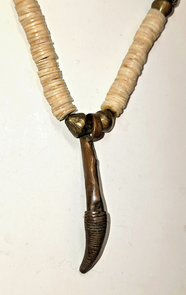 $ 9.71N6421 Hand Carved Horn Tusk Pendant Tribal Boho Ethnic Necklace Brass Caps