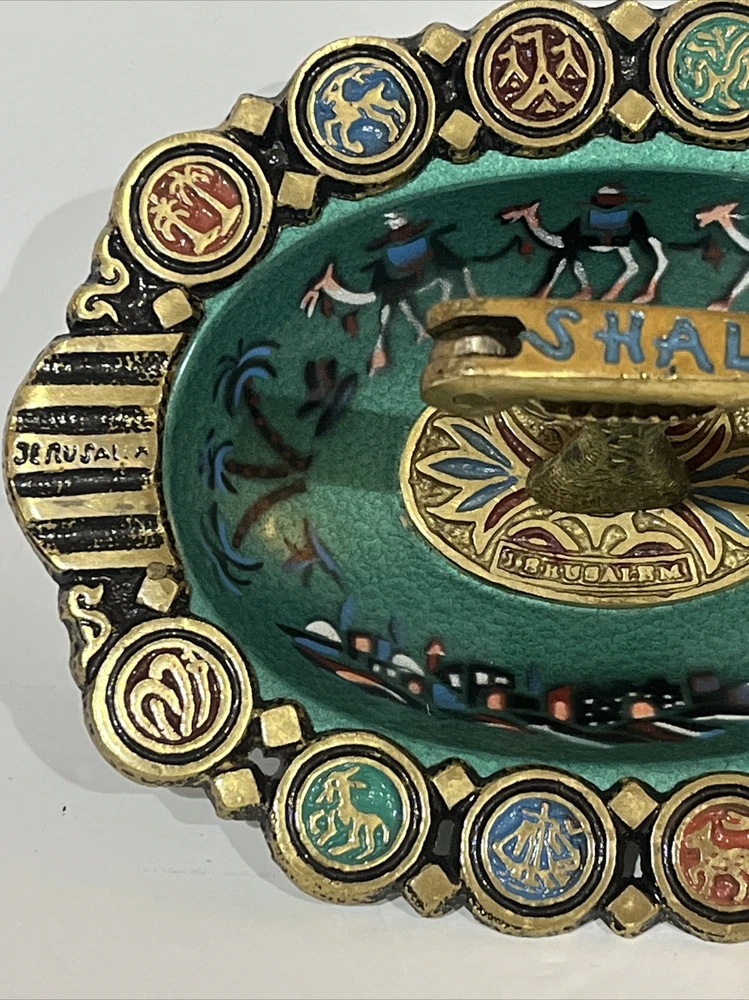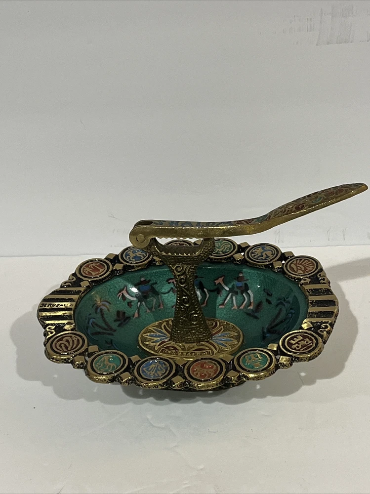 Vintage Israel Enamel Brass Bowl Nut Cracker With Zodiac Signs. Please see all the photos for the condition and the dimensions. This item is in great condition for its age. No chips or cracks. No repairs. The dimensions are about 7 X 5.5 X 4.5”. The work on the bowl is so amazing. There are zodiac signs on the rim as shown in the photos. This item is so beautiful. I have the same bowl in blue color in my selling list. Sold as is. Shipped with USPS Priority Mail. Fee free to ask me any questions anytime. I have a lot of rare vintage and antique items and electronics in my eBay store. Feel free to check my other items for sale. Happy bidding and thank you!