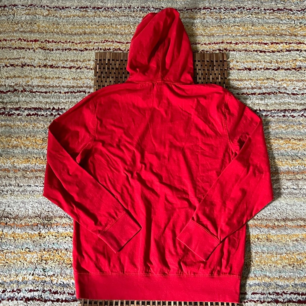 The Vintage J. CREW Pullover Hoodie in red is a stylish and comfortable option for men's activewear. Made from soft cotton fleece material, this hoodie features a classic crew neck and long sleeves, perfect for the winter, fall, and spring seasons. The pullover style with a hooded accent adds a touch of practicality to the garment, making it ideal for walking activities. Machine washable and in a size XL, this hoodie from the reputable brand J.CREW is a timeless addition to any man's wardrobe.