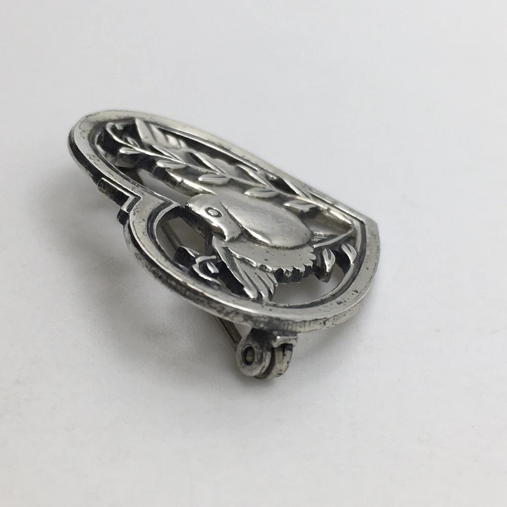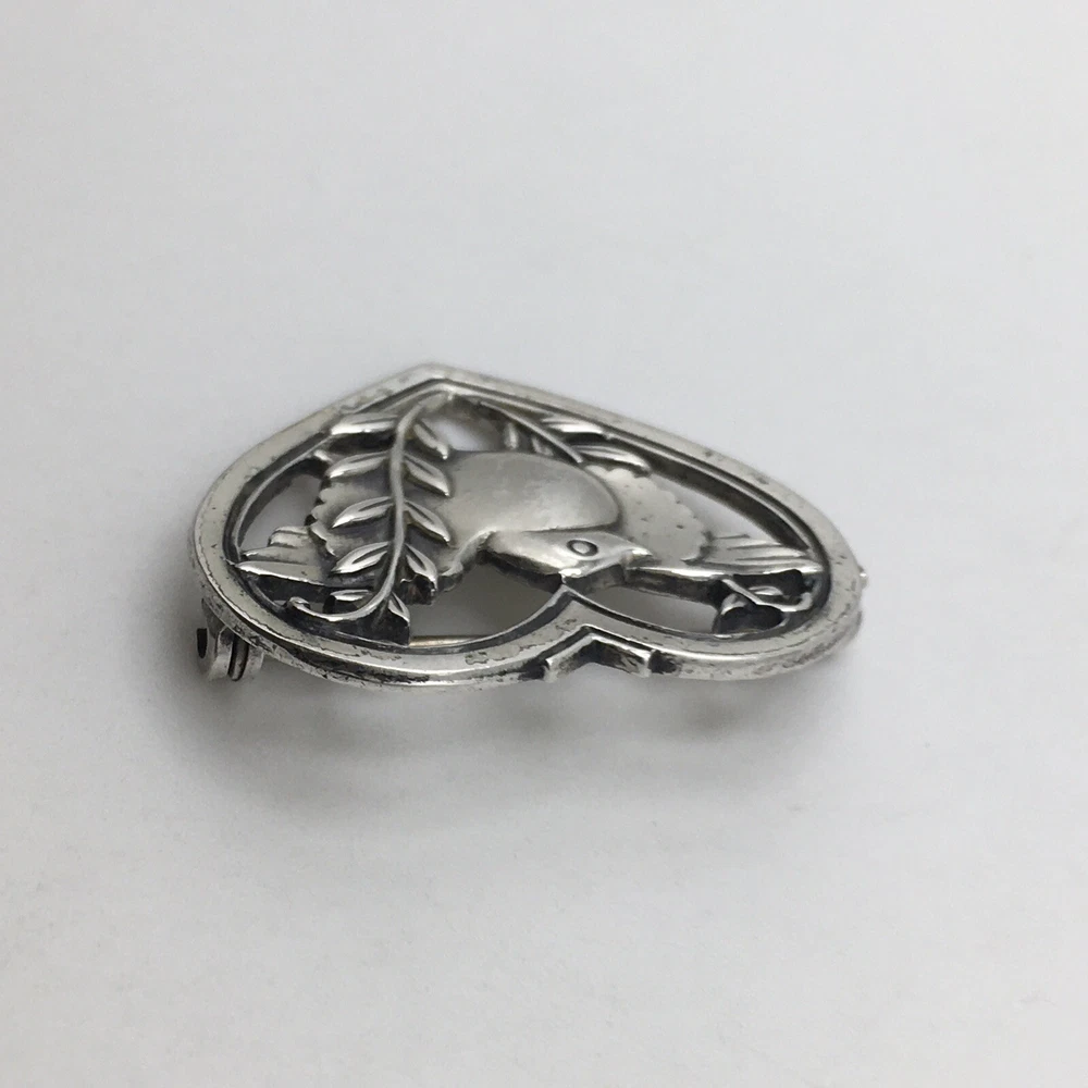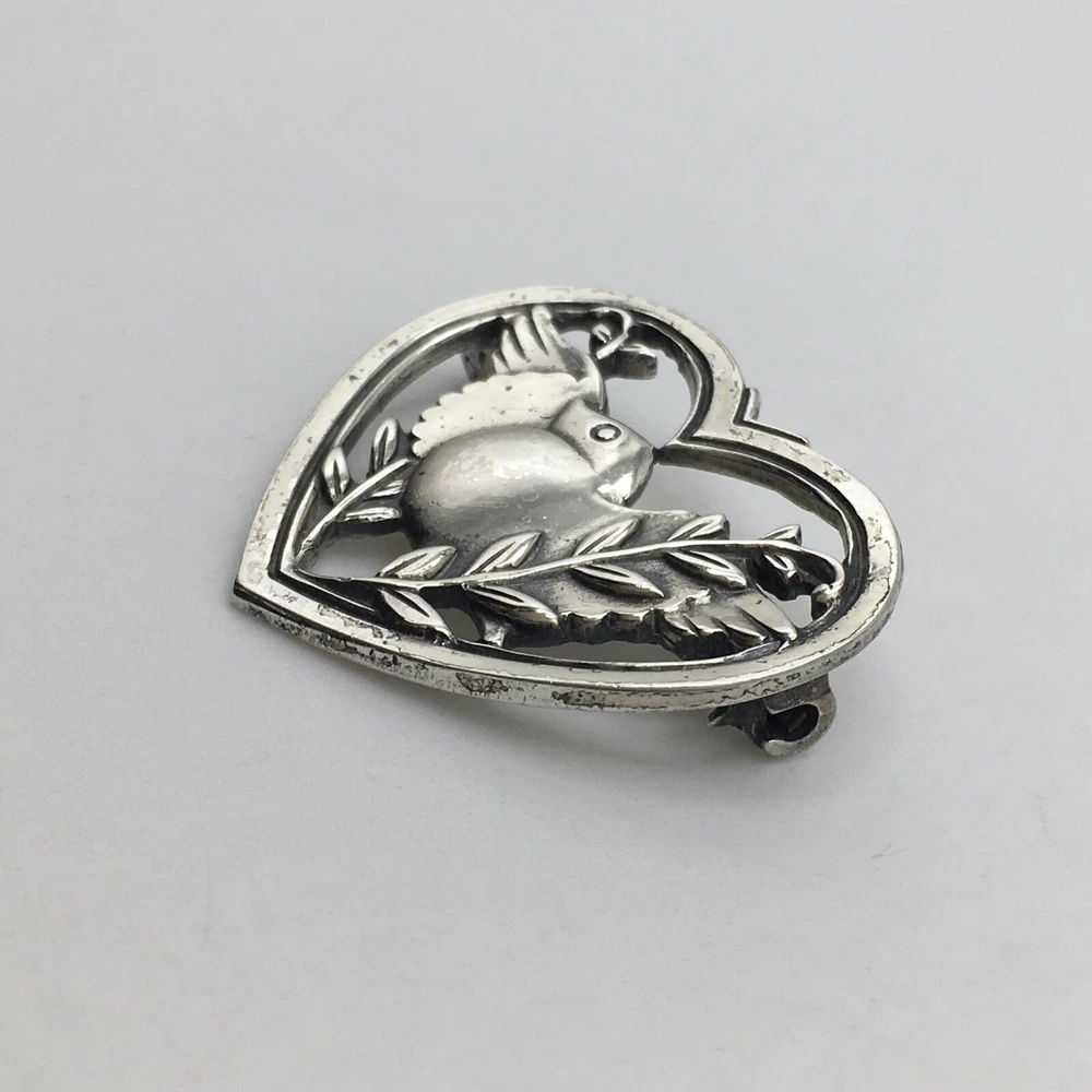 Vintage J Coro 925 Sterling Silver Bird Branch Heart Pin Brooch #78