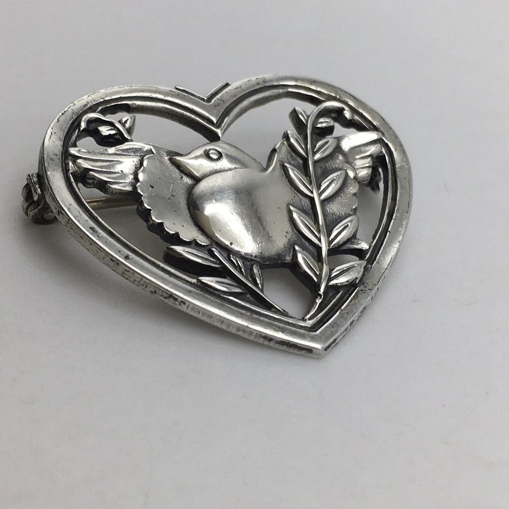 Vintage: Yes Type: Brooch Base Metal: Silver Shape: Heart Signed: Yes Color: Silver Theme: Birds, Love, Art, Retro, Western, Nature, Luck, Flowers & Plants, Fashion & Costumes, Family & Friends Brand: Coro Metal Purity: 925 Metal: Sterling Silver