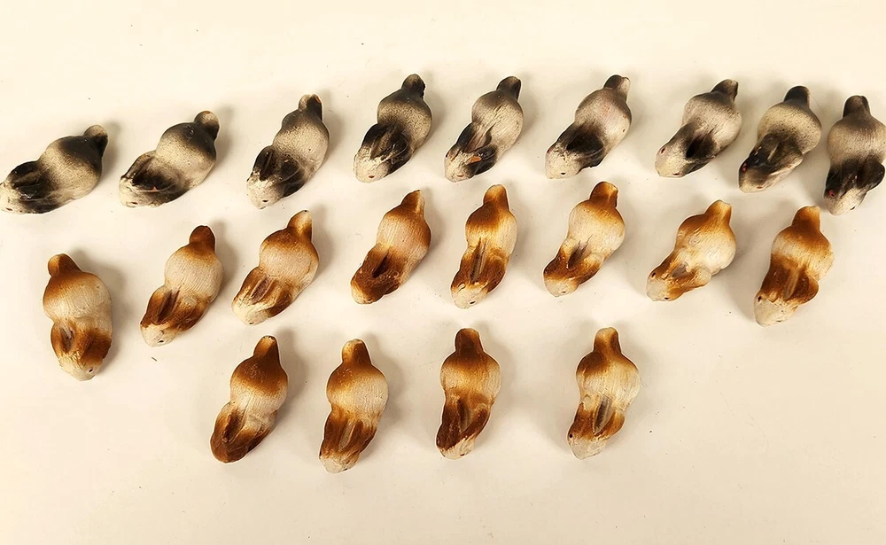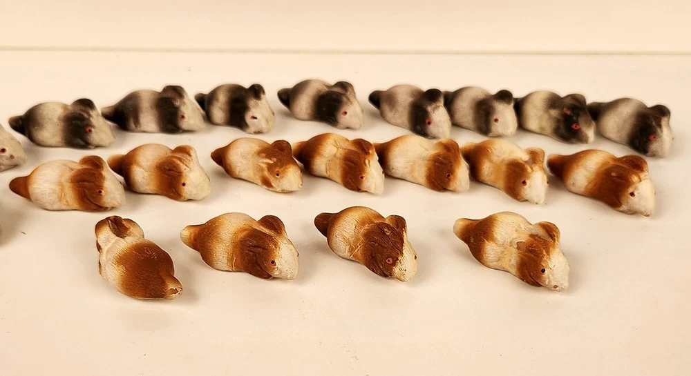 You are bidding on a Vintage set of Barnyard and Nativity Animals twenty one Rabbits/Bunnies. Handmade in Barcelona Spain by Belenes Puig, S.I. Made of sun hardened terracotta and hand painted. Traditional Spanish folk art. I bought these in the early 90's. The Rabbits/Bunnies are in good condition. A few spots of missing paint. Never used or displayed. 2" long. I will combine shipping on all Puig Nativity Animals. All Items listed come from my personal collection. I am not a professional dealer and I try to describe each item's condition as accurately as possible while providing multiple images. Please feel free to contact me with any questions you may have before bidding. Smoke free household. Item pictured is the item you will receive. NO OVERSEAS BUYERS! I ONLY SHIP TO THE UNITED STATES. PLEASE DO NOT BID IF YOU ARE NOT FROM THE UNITED STATES WITH A VALID UNITED STATES ADDRESS Thank you.