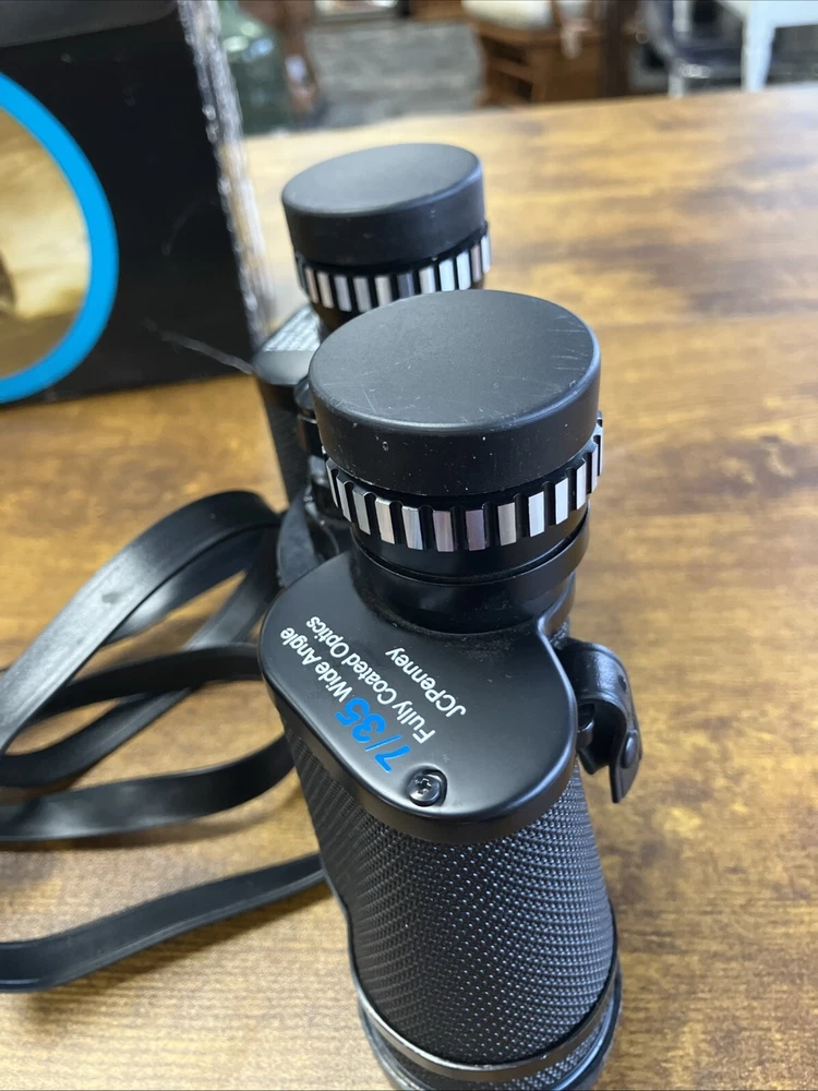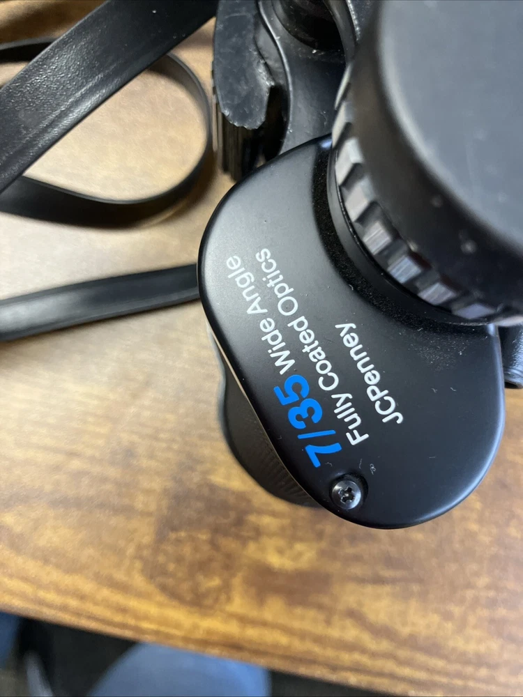 The Vintage JC Penny Model 0101 Binoculars are a classic pair of binoculars with a 7x magnification and 35mm objective lens diameter. Made in Japan in the 1950s, these binoculars are in like-new condition, showcasing a sleek black color and high-quality craftsmanship. With the JC Penny brand name associated with them, these binoculars are sure to provide clear and precise viewing for various outdoor or indoor activities.