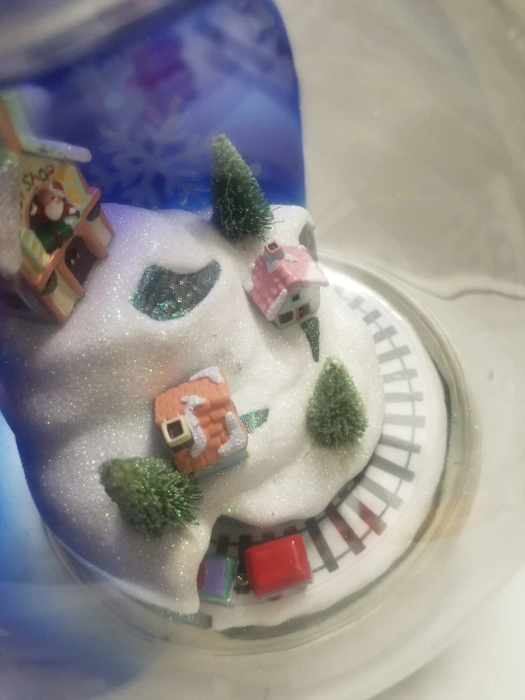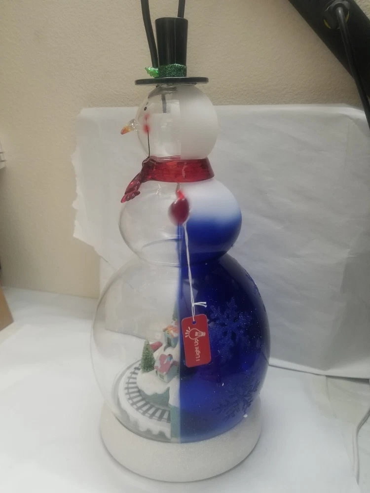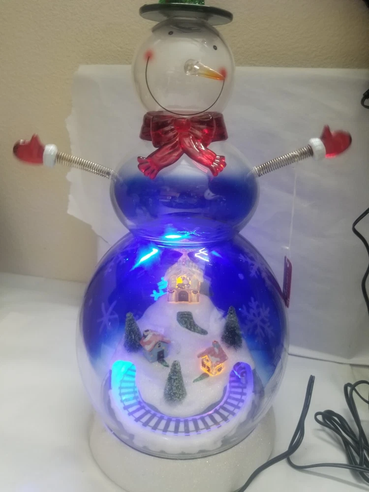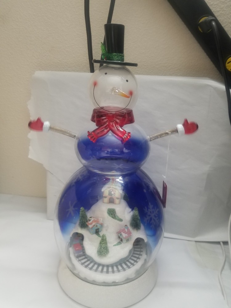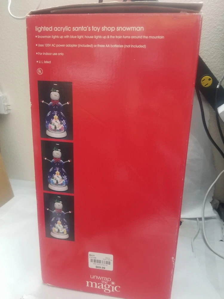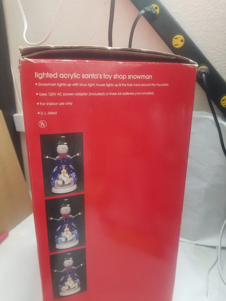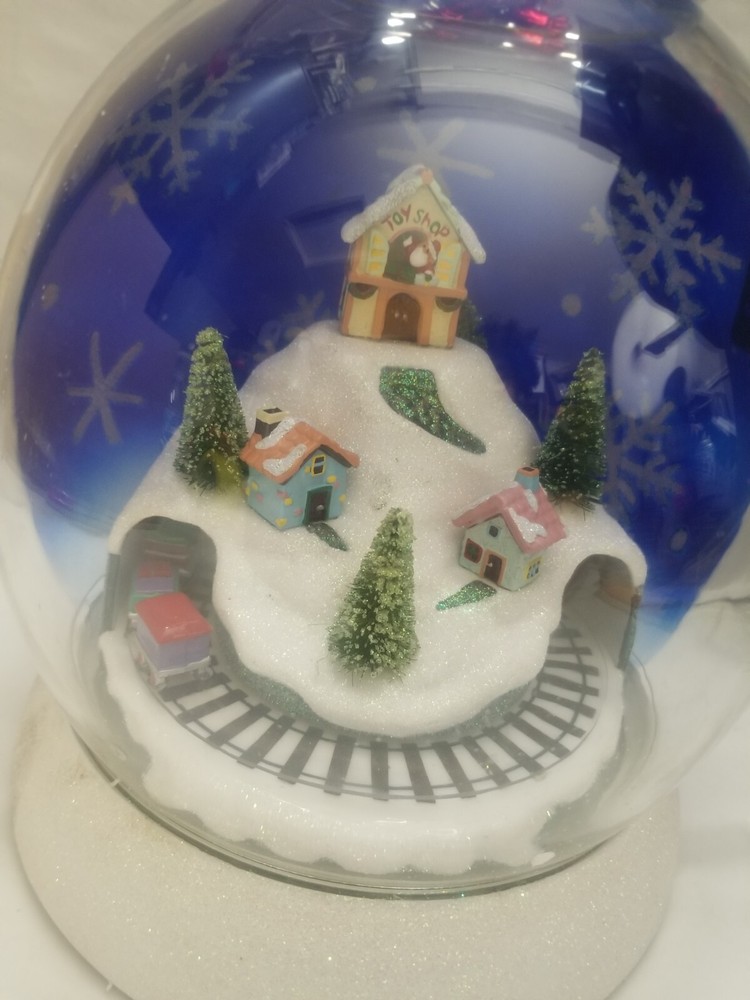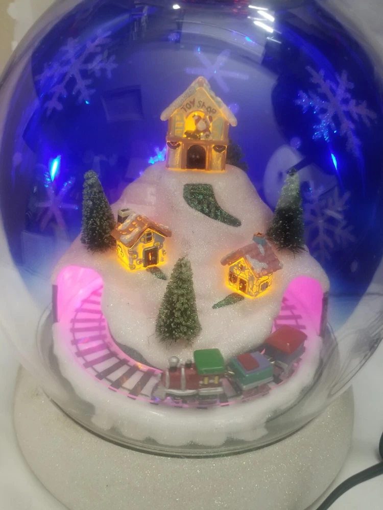 Really awesome hard to find Christmas piece from JCP. Vintage item with original tag. Item does light up and has a moving train inside globe, as well as music to compliment the scenery. Item has been tested and works. Box does have some wear due to age but item itself is in great condition. Only main "concern " is the glue that holds the spring arms aren't as sticky and the arms can fall off. Can easily be fixed with super glue if desired. If not , arm can still be placed and shown. Tested using Power supply only.