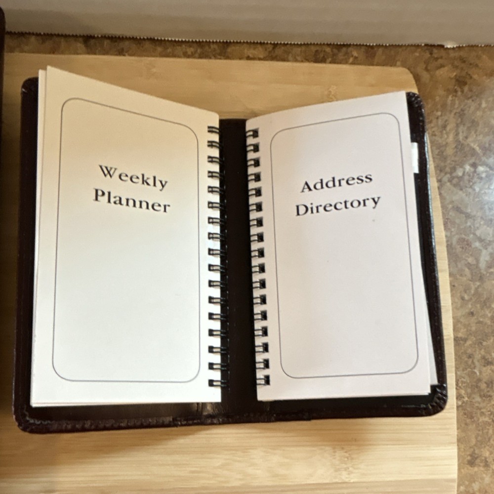 Vintage JCPenney Protocol Leather Planner Set 12.5” Binder + 4x7 Pocket Organizer – UNUSED Beautiful vintage Protocol by JCPenney leather planner set in pristine, never-used condition. Both the large 12.5” binder and matching 4x7 pocket organizer show minimal to no signs of use, with clean interiors and well-preserved leather. A rare find in this condition. Crafted from quality leather with a classic, professional design—they don’t make them like this anymore. Perfect for collectors, daily use, or anyone who appreciates vintage office accessories with lasting durability and style. • Includes 12.5” leather binder • Includes 4x7 pocket planner • Genuine leather construction • Unused / like-new vintage condition