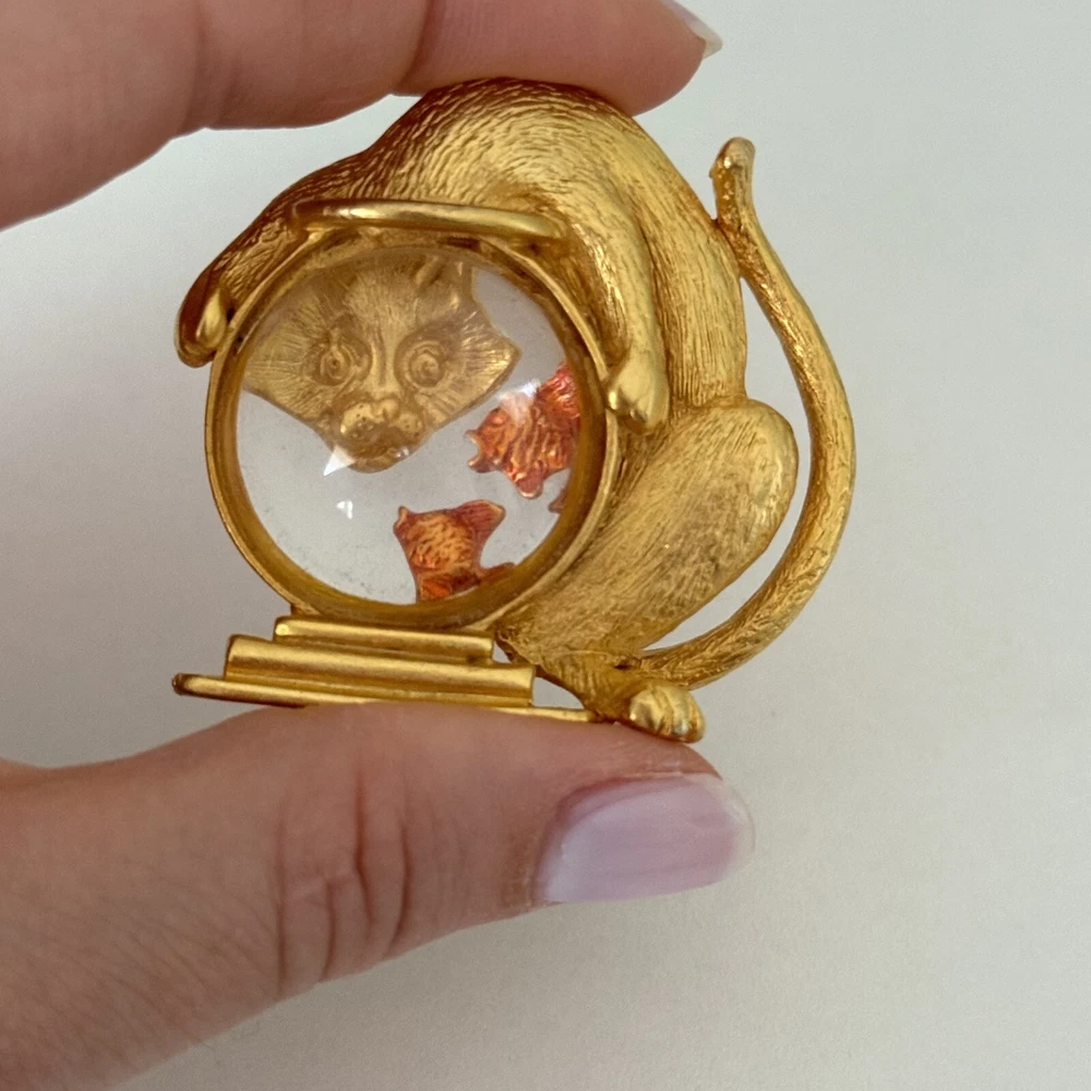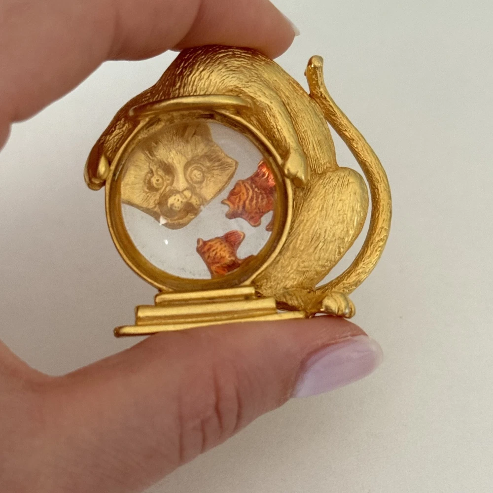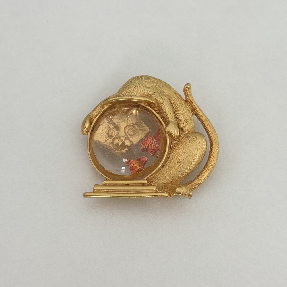 Lovely Vintage JJ Jonette Signed Jelly Belly Kitty Cat In Fish Bowl Brooch Pin Length: Just under 2" Signed: JJ Very good vintage condition. - Fast shipping, I ship the same or next business day! I also combine shipping. - Thank you so much for shopping with me and please check out my other jewelry listings, I post new pieces daily!