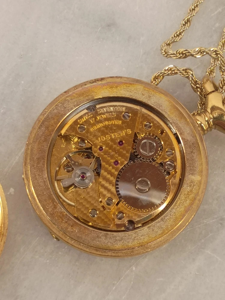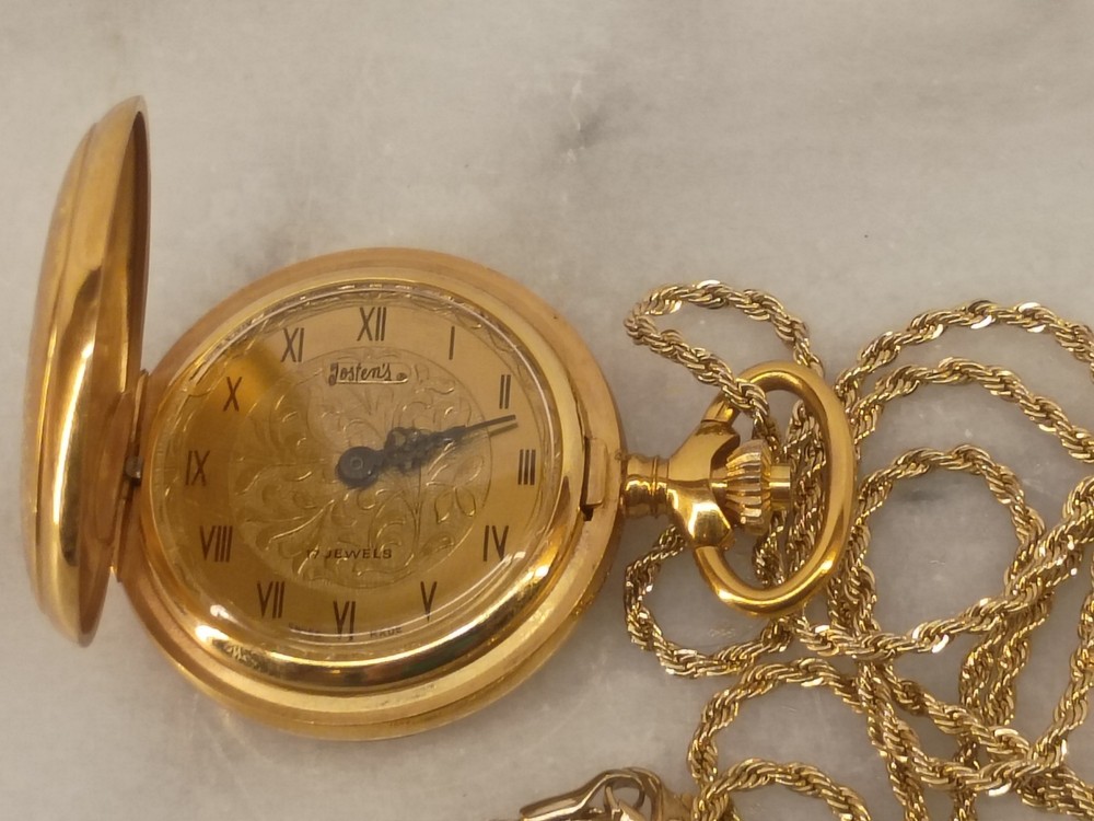 The Vintage JOSTENS 17 Jewel Gold tone Pocket Watch Pendant is a rare and unique timepiece that functions as a functional piece of jewelry. This pocket watch, with a mechanical (manual) movement and 17 jewels, features a hinged lid and a gold tone chain for easy carry. The gold dial and case color add a touch of elegance, making it a desirable accessory for both men and women. With its distinctive design and brand, this pocket watch from the 1980s is sure to be a standout addition to any watch collection. Thank you for visiting my listing today and thank you for your interest in this item! My goal is to have a pleasant transaction resulting in a satisfied customer. I hope any transaction between us leaves you with a feeling of confidence knowing you can trust me and the items I offer here. *Most if not all my listings are set to accept offers. Feel free to send an offer and I will be happy to consider it!! *Please contact me with any questions or concerns and I will be happy to help. *Always examine the photos carefully, and if in doubt, email me with any questions you may have. *Please note that condition statements are offered as a guide only. They will always be somewhat subjective and reflect our opinion, which may not necessarily agree with someone else's opinion. PLEASE READ: I aim to please and I want my buyers to have a positive transaction with me. If you have questions, concerns, or special requests related to any of my items I hope you will contact me so we can work them out to your satisfaction. I sell my items to give you a great item at a decent price while making a little profit at the same time. If you feel the item you are interested in is too pricey do not hesitate to send me a fair offer and I will consider it. My goal is to satisfy your needs and mine so both parties can benefit. SHIPPING: If you prefer a different shipping method or company please contact me and I will do all I can to make that happen. If you have concerns or requests about the packaging of your item contact me and I will do all I can to accommodate them. Shipping costs are based on location in each state or country, the costs always differ. After I have received your payment I will ship your item out within 3 business days or less excluding weekends and holidays. BEFORE PURCHASING & BIDDING: **Please see all the pictures. I do not have great photography skills but I try to get the most accurate photos I can. If you are unsure about something you see in a photo contact me so I can do what I am able to answer your concern about the item. **I cannot stress enough that if you have any questions or concerns please contact me before purchasing and bidding. Communication can solve so much. **As a customer myself, I understand the meaning of customer satisfaction and my goal is to have nothing but satisfied customers. If you are not unsatisfied with your purchase I ask that you please contact me so I can take care of your issue. My goal is for you to be 100% satisfied. INTERNATIONAL BUYERS WELCOMED - PLEASE NOTE: I welcome International buyers! Please be aware that any custom/duties/taxes that the parcel might incur once it is out of the USA are the responsibility of the buyer. Please check with your country's customs office to determine what these additional costs will be prior to bidding or buying. Please refer to the eBay Site Map for more information if needed.