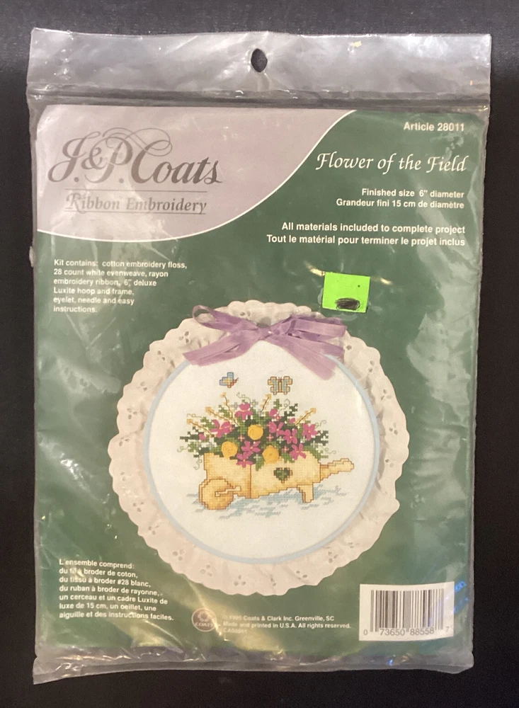 HomeVintage J&P Coats Ribbon Flower Of The Field Embroidery Kit 28011, 1995