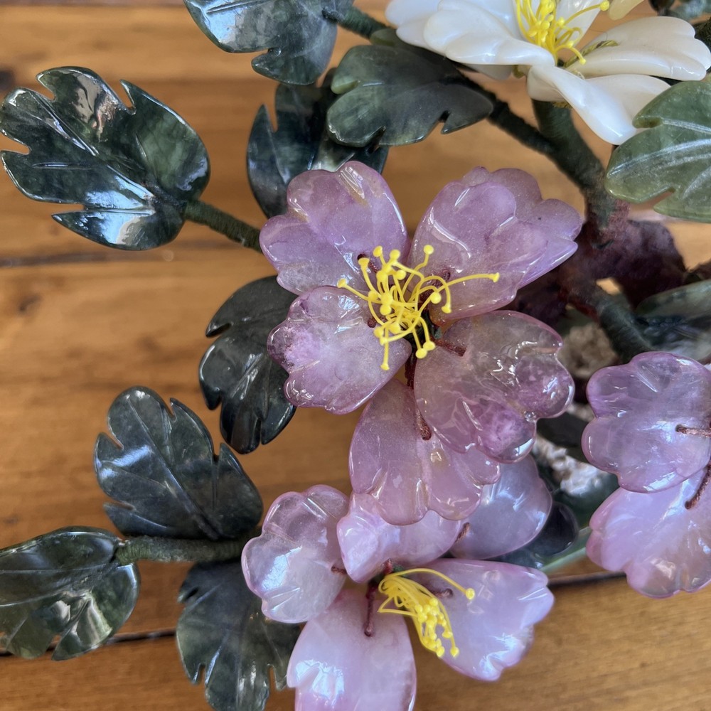 Beautiful Jade Rose quartz and Calcite Bonsai Tree in good vintage condition. The jade tree is a symbol of prosperity and good luck.