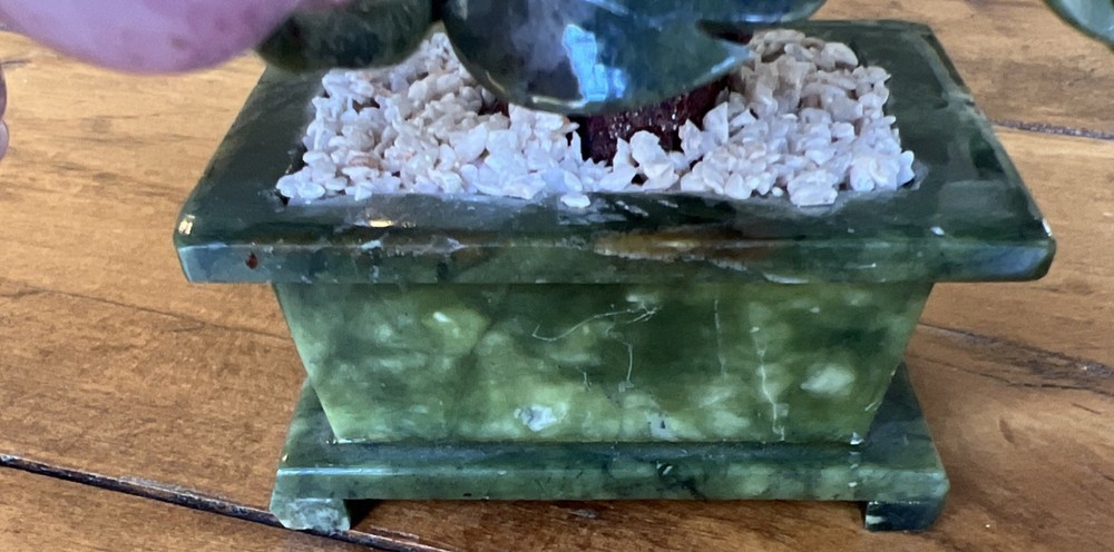 $ 10.04VTG Chinese Jade Glass Leaves Pink Cherry Flowers Bonsai Tree Green Celadon Pot