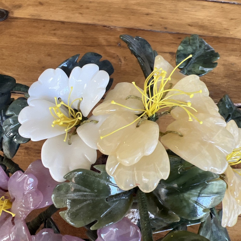 $ 14.79Vintage Chinese Gemstone Bonsai Tree – Multicolor Flowers in Ornate Carved Pot