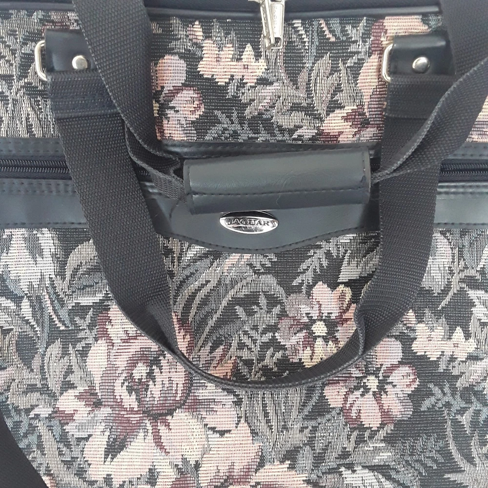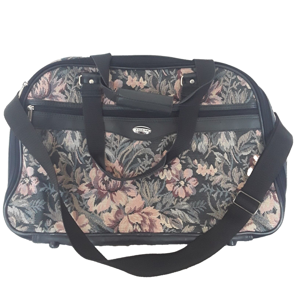 HomeVintage Jaguar Navy Floral Tapestry Duffel Bag Carry On Luggage
