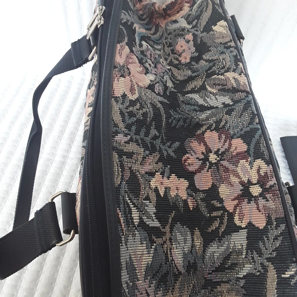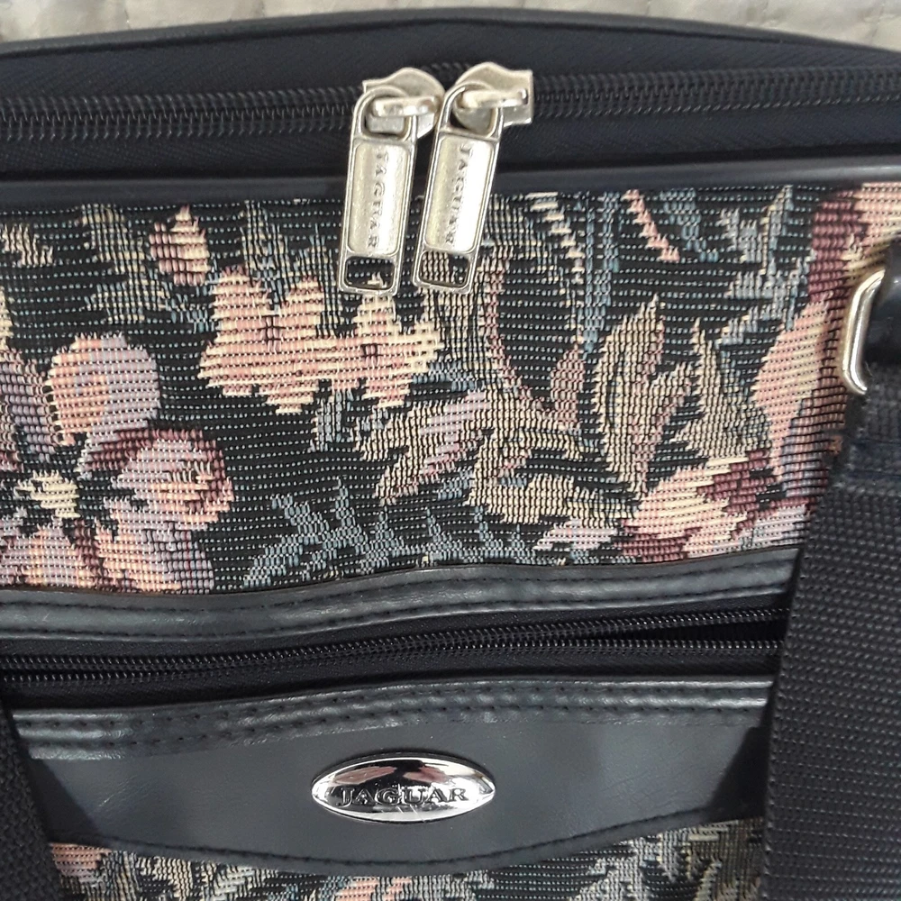 Jaguar Floral Tapestry Duffel Bag Carry On Luggage Navy Floral Vintage Used