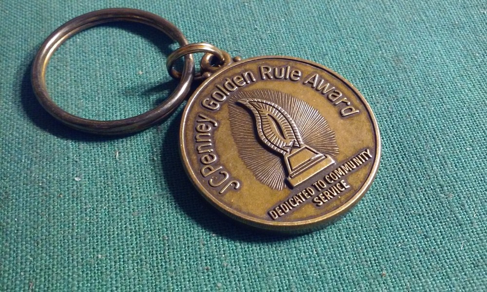 Vintage James Cash JC Penney Golden Rule Award Brass Keychain Key Ring Fob Brass.