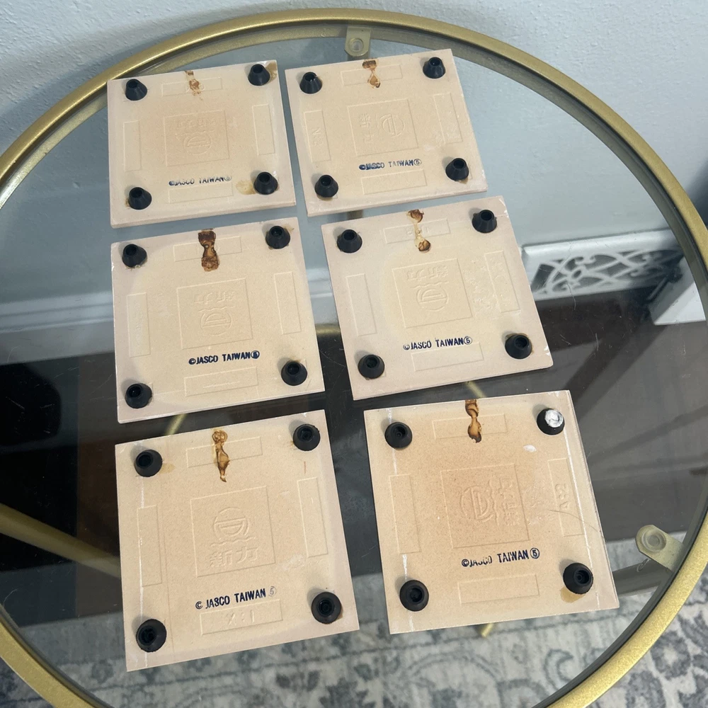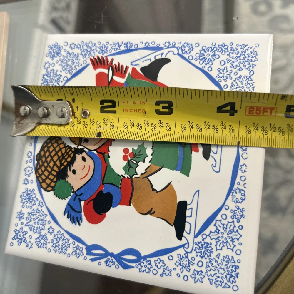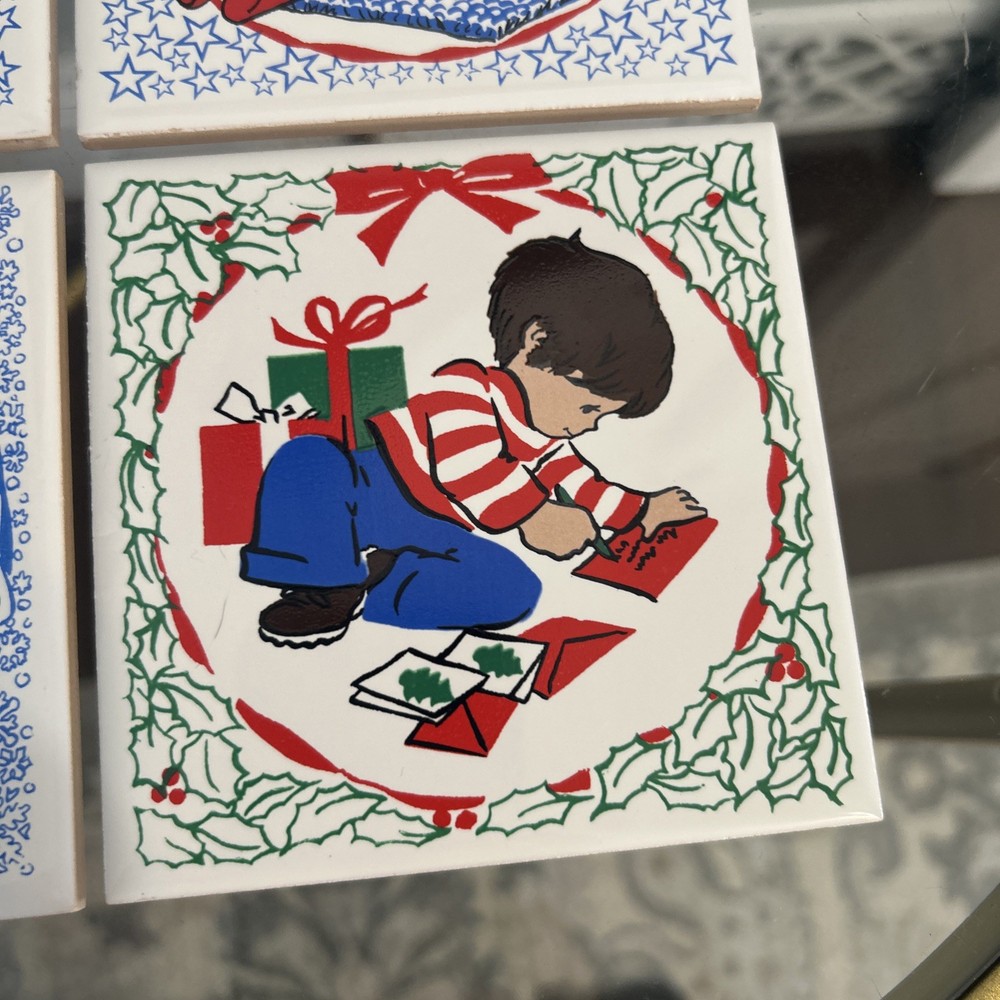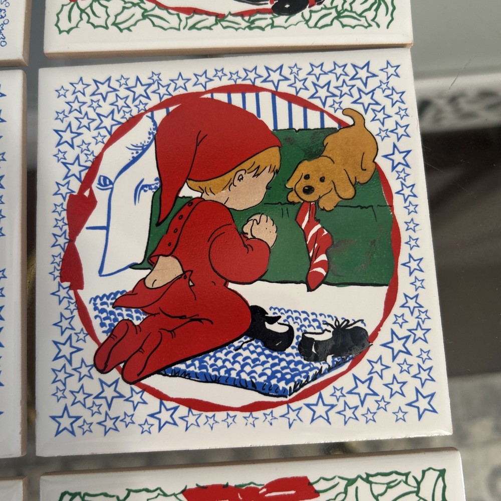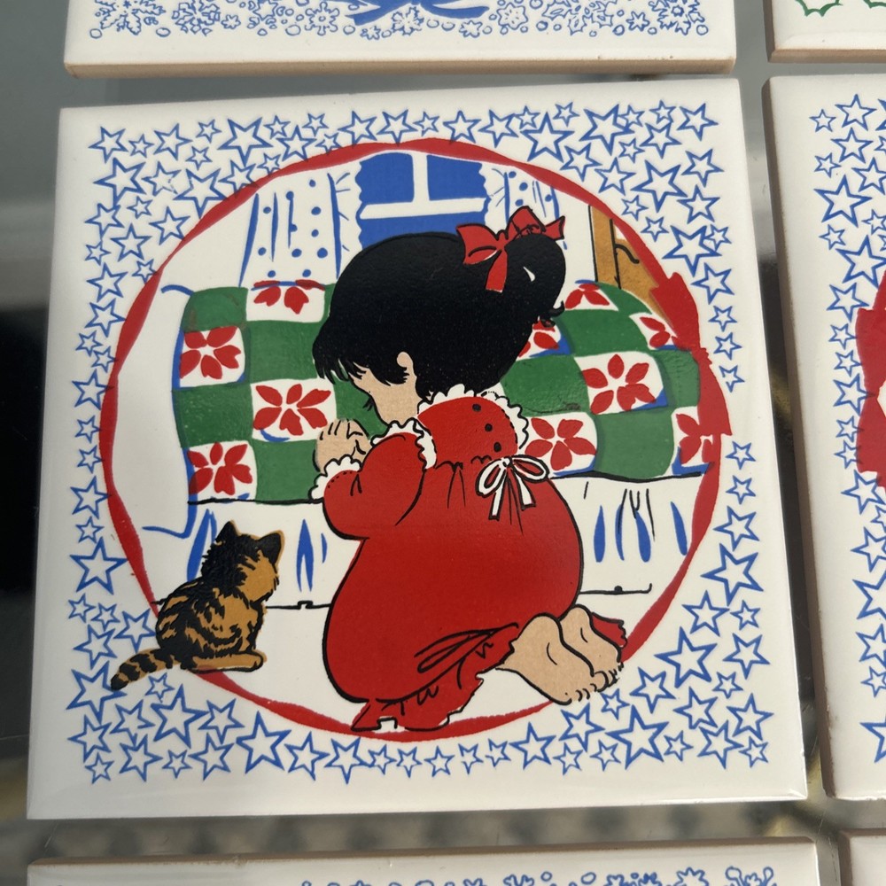 The Vintage Jasco Christmas Holiday 4" Ceramic Tile Trivet 6 pieces Set features a festive multicolor design perfect for the holiday season. Made of ceramic, these trivets add a touch of charm to any Christmas table setting. This set is ideal for adding a decorative and functional element to your holiday celebrations.