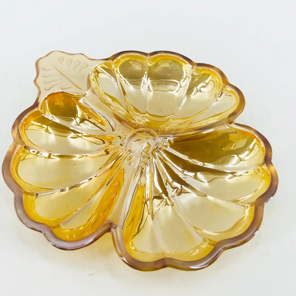 Vintage Imperial Carnival Glass Divided 3 Section Candy Nut Relish Serving Tray 7” X 6”