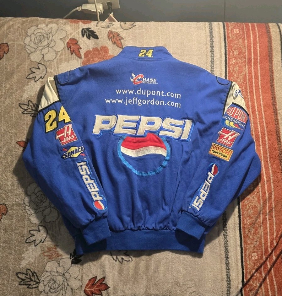 This Jeff Gordon Pepsi jacket is a must-have for any NASCAR fan! The XL size fits perfectly, and the quality is amazing. It’s super rare, so I’m thrilled to finally own one. The condition is great, and the details are just like in the pics. Highly recommend for collectors!