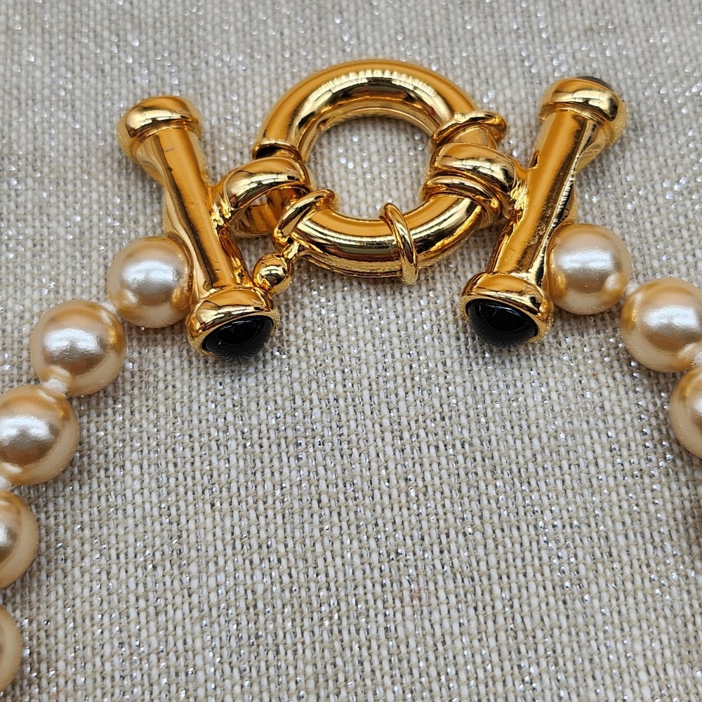 This stunning vintage Joan Rivers bracelet is a true gem! The faux pearls and gold-tone closure give it an elegant, timeless look. It's in excellent condition with just slight wear, adding to its charm. The seller is super accommodating with combined shipping—just reach out. Returns are accepted if notified quickly, making buying worry-free. A must-have for any vintage jewelry lover!