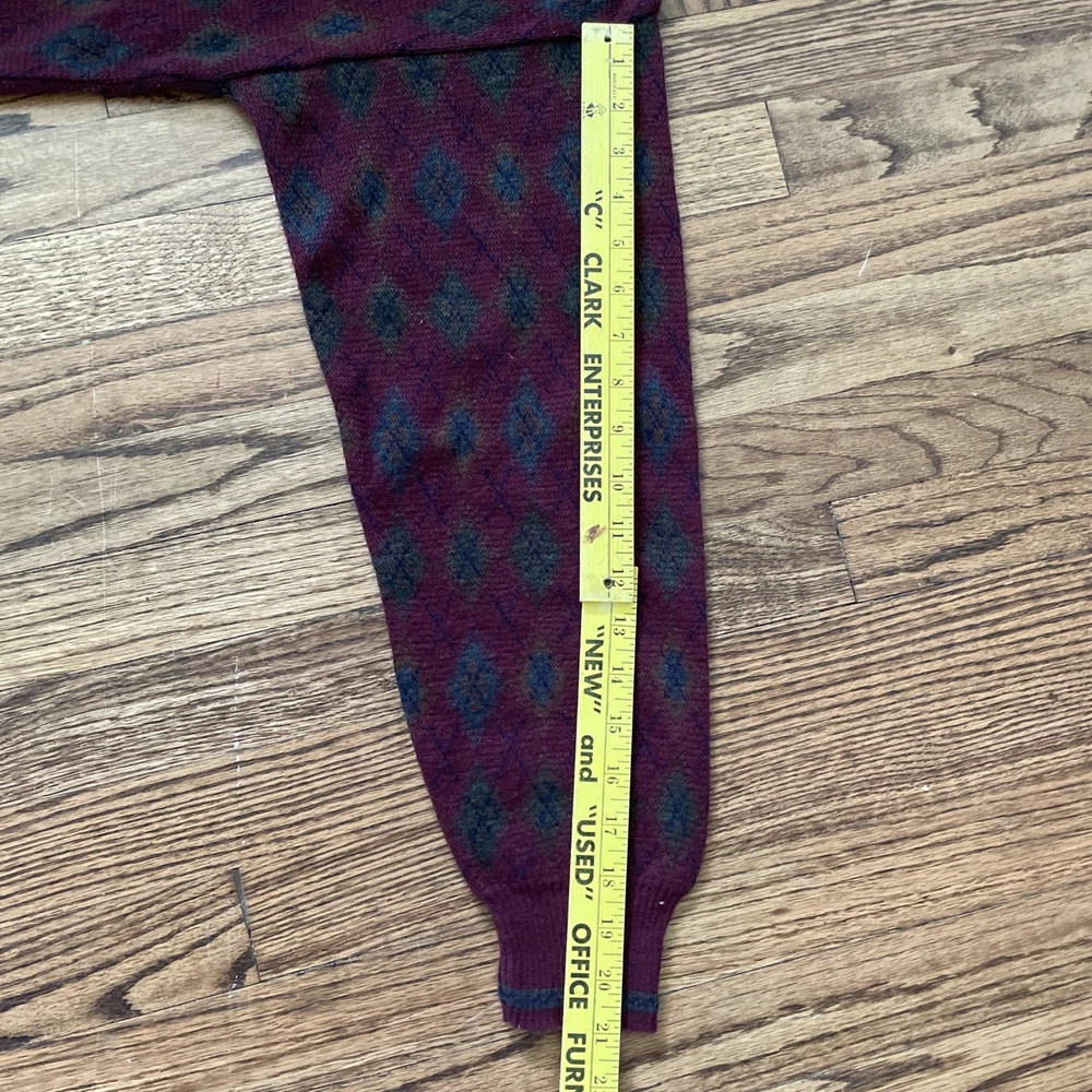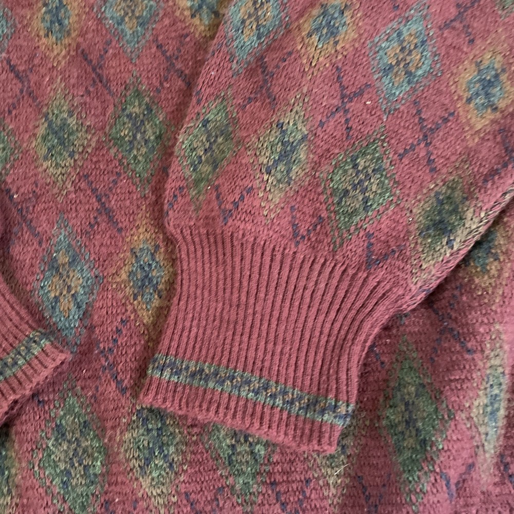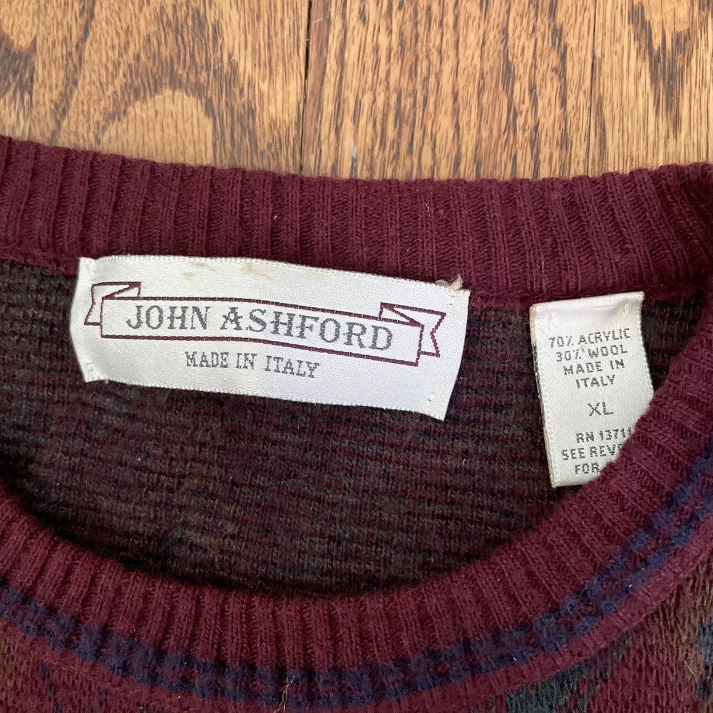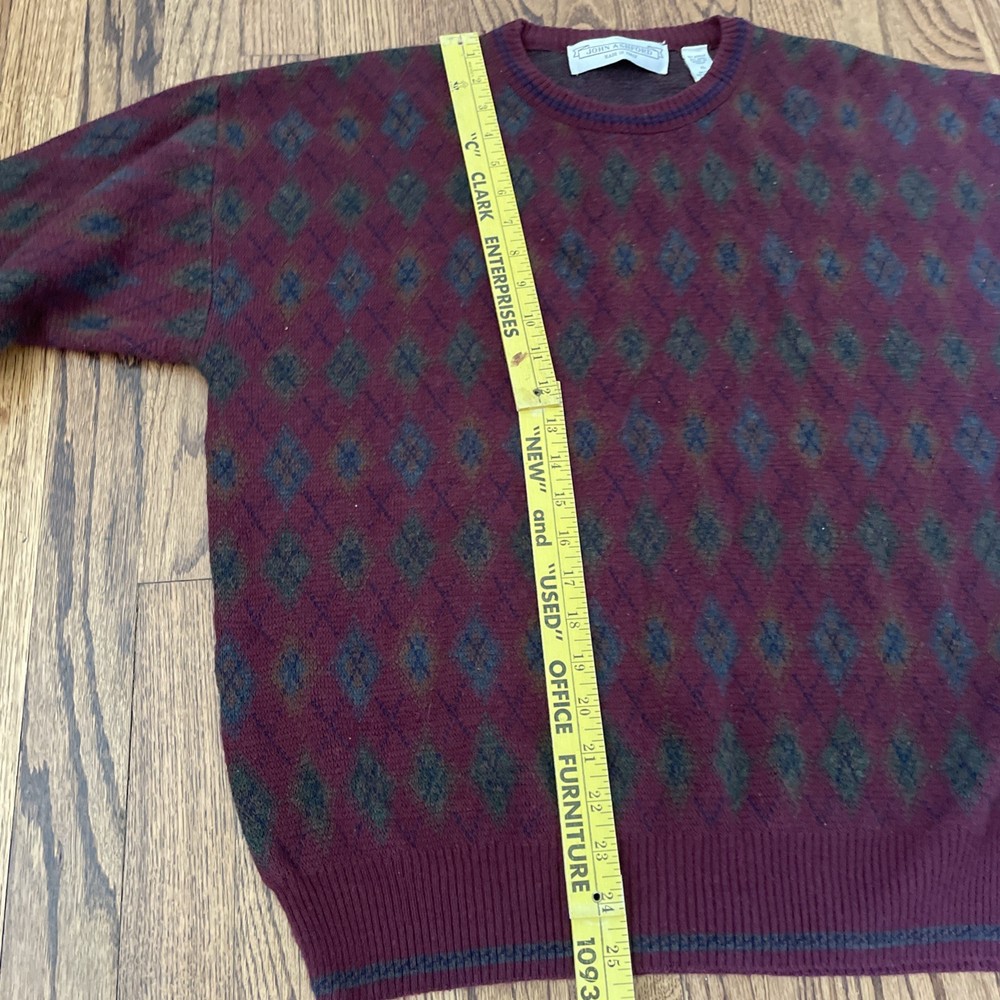 Vintage John Ashford Made In Italy Red Sweater XL wool blend diamond pattern