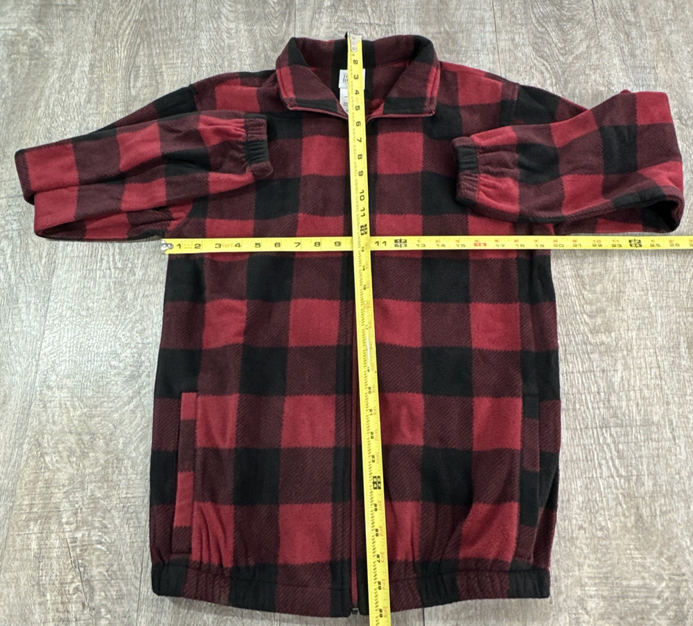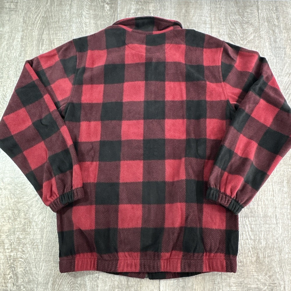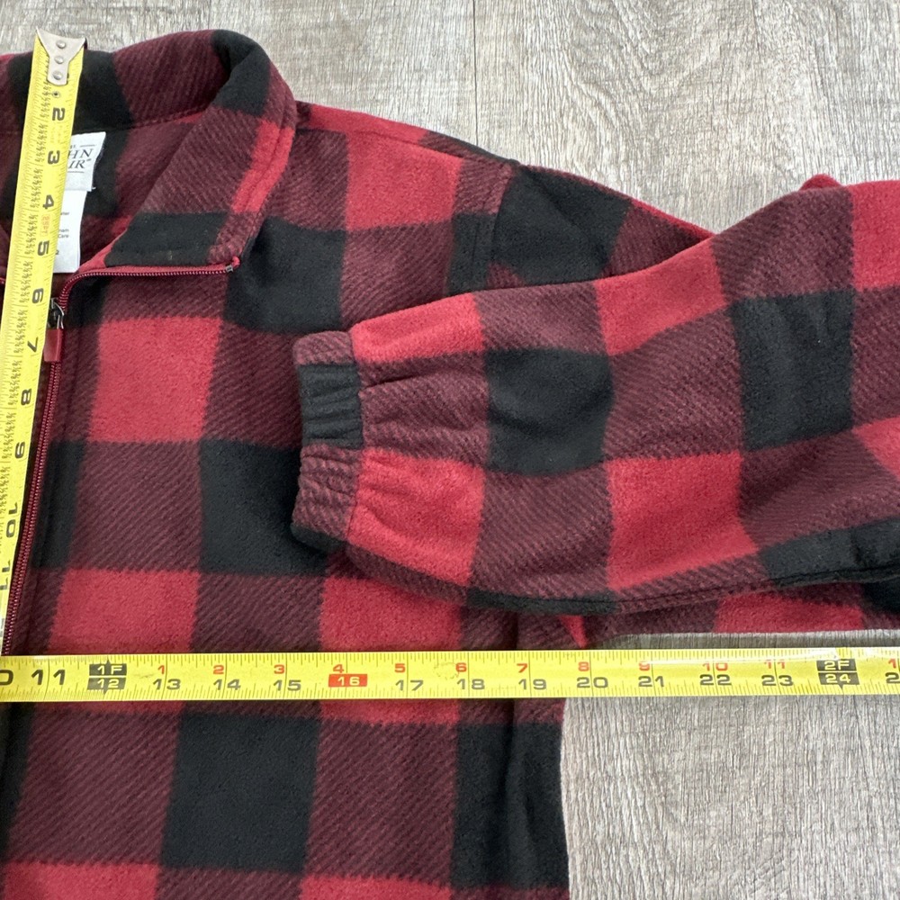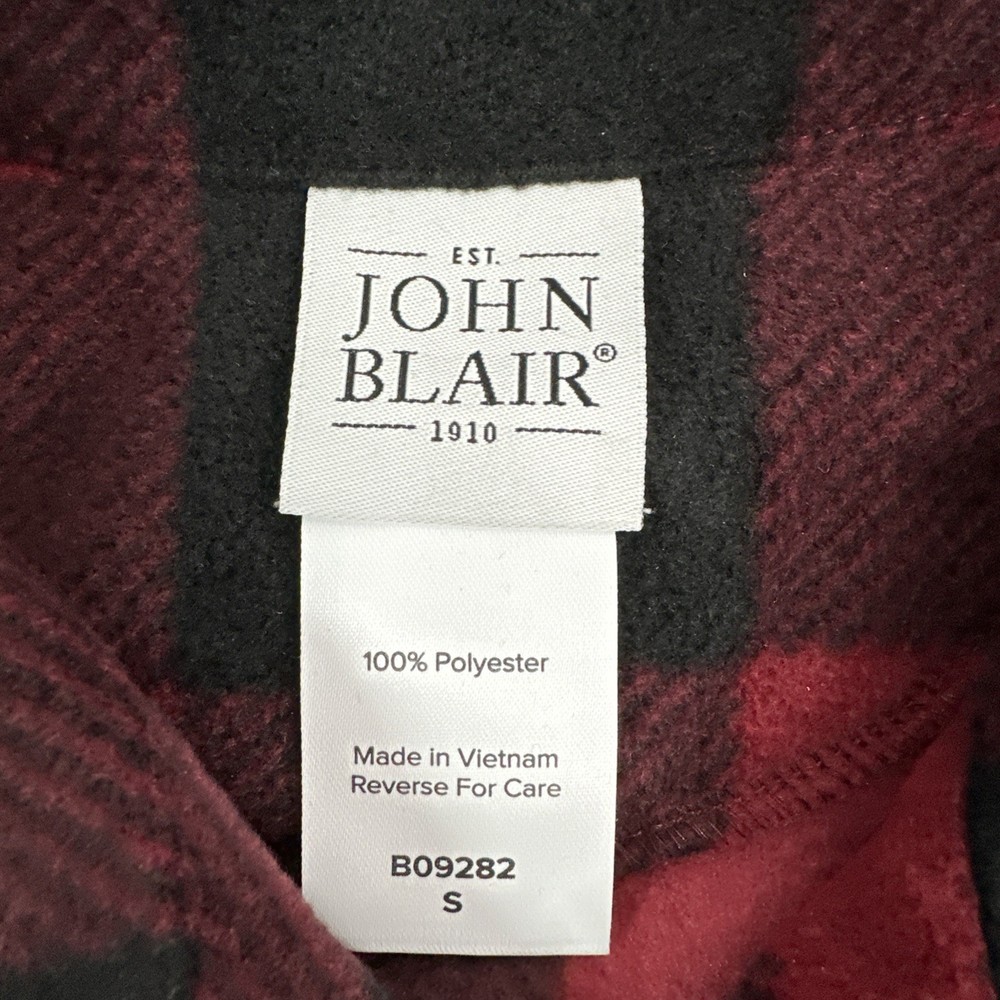 The Vintage John Blair Men's S Buffalo Plaid Fleece Jacket is a stylish and comfortable addition to any man's wardrobe. Made from polyester with a fleece fabric type, this jacket features a classic black and red plaid pattern, perfect for a casual occasion. The full zip design, regular fit, and machine washable care instructions make it easy to wear and care for. Ideal for winter and fall seasons, this lumberjack-style jacket exudes a grunge aesthetic that is both trendy and timeless.