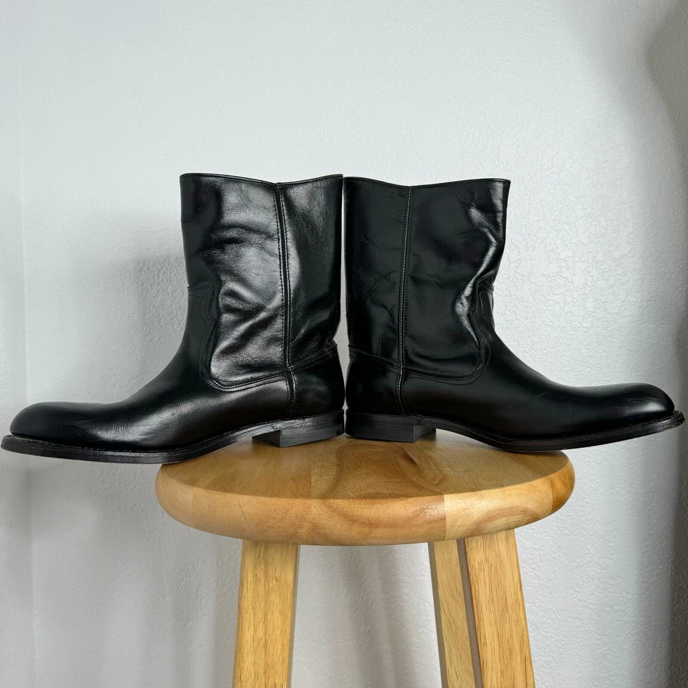 These vintage Johnsonian officer’s boots are a true find! The rich leather is beautifully preserved, and the custom craftsmanship from the 1940s gives them unique character. Despite slight heel wear, they’re still sturdy and stylish—perfect for collectors or anyone who appreciates timeless military elegance. The supple interior leather feels luxurious, and the fit is surprisingly comfortable. A rare piece of history with undeniable charm!