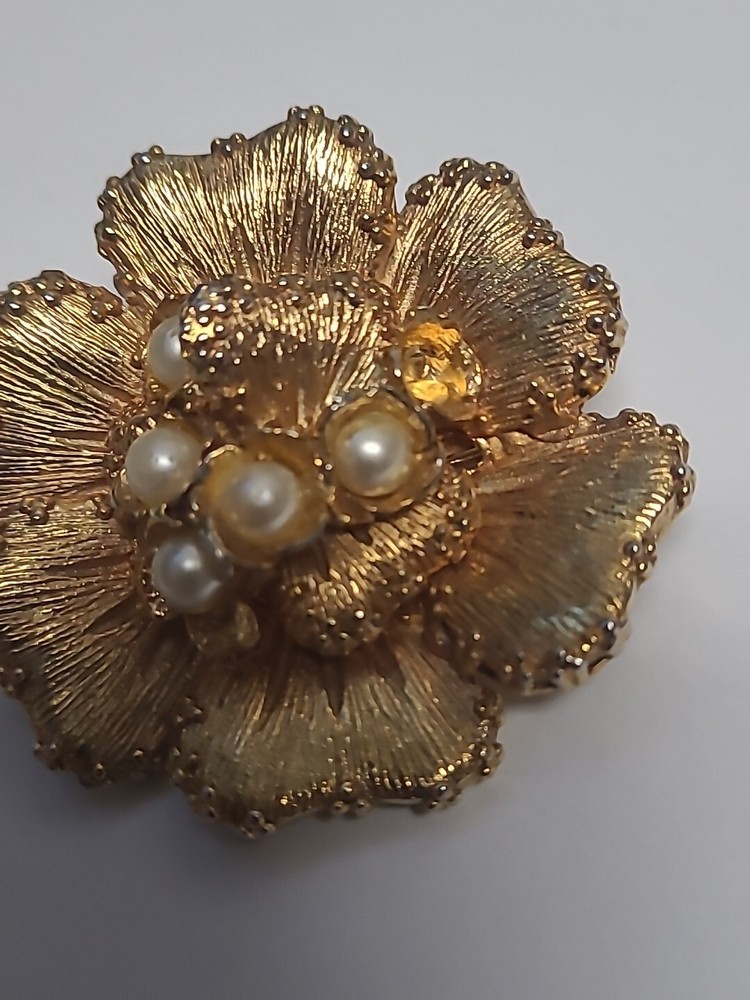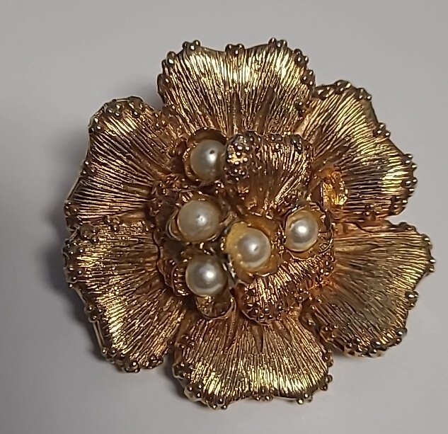 This vintage Judy Lee brooch is a stunning piece of jewelry that is perfect for any special occasion. With its beautiful goldtone base metal and simulated pearl main stone creation, this brooch is sure to turn heads. It's signed by Judy Lee and has a PAT Number, making it a unique addition to any collection. The brooch is perfect for Christmas, Anniversaries, Birthdays, or even Christening ceremonies. Its vintage design is timeless and elegant, making it a perfect gift for anyone who appreciates classic jewelry. This brooch is a must-have for any jewelry lover and will make a great addition to your collection.